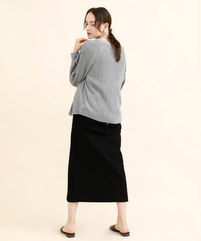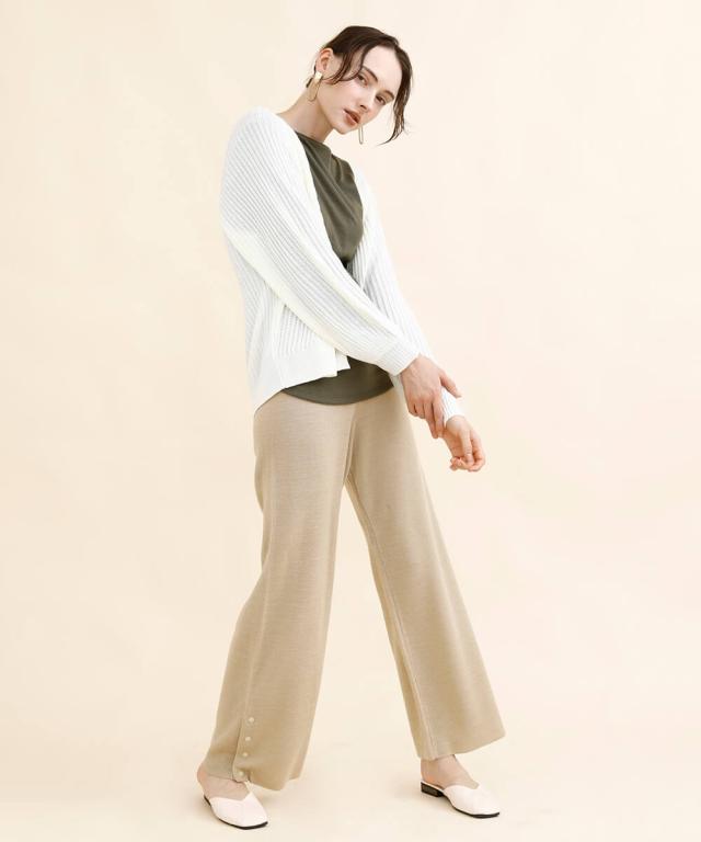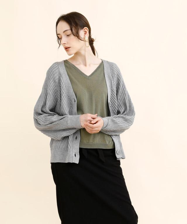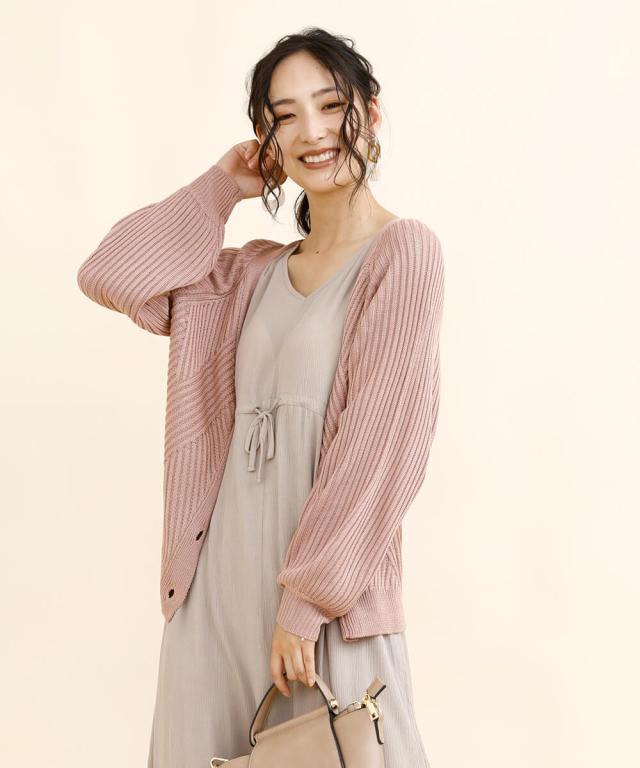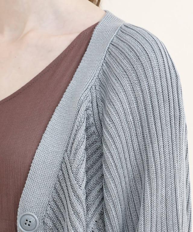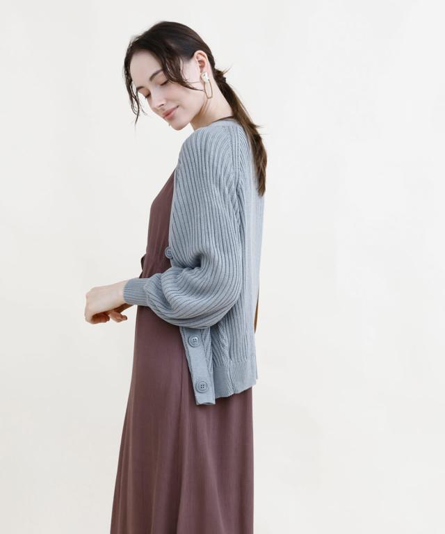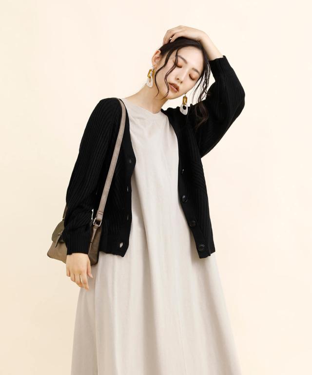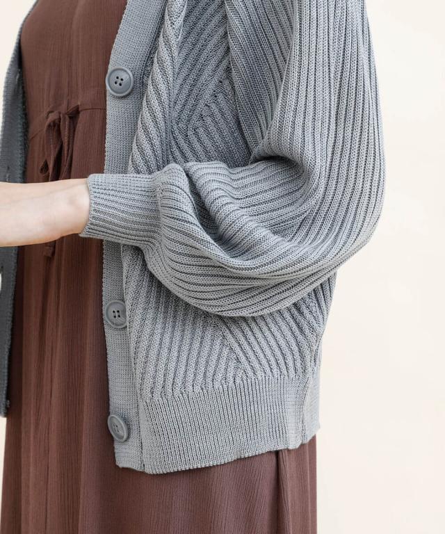 太めのリブモチーフで出来上がったカーディガン。少しストンッとしたシルエットで、