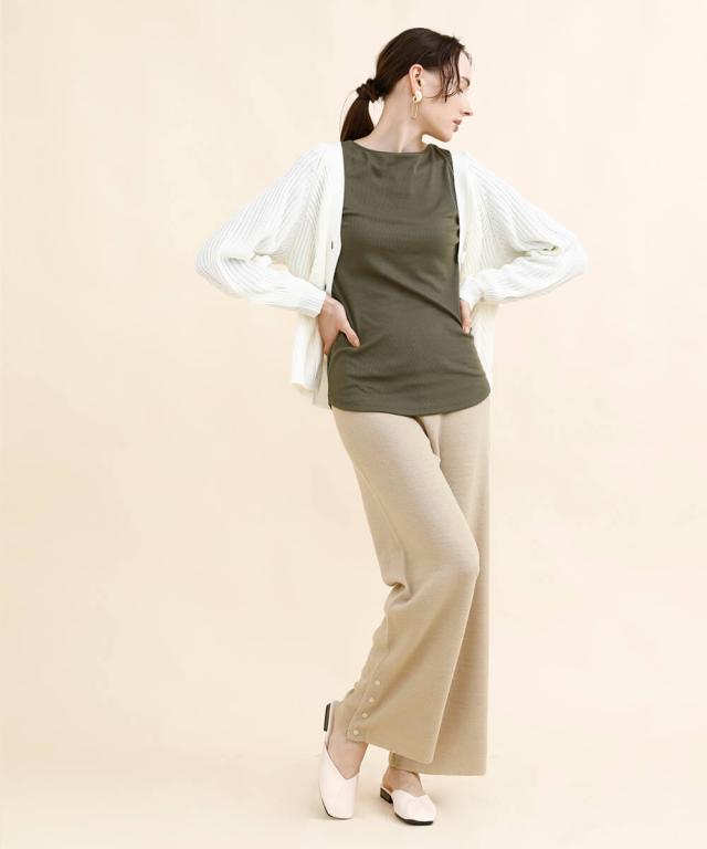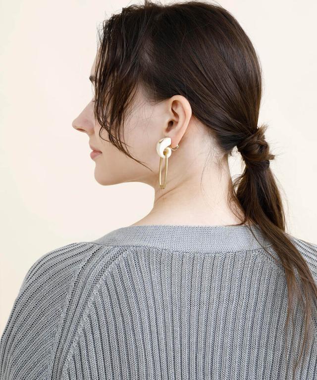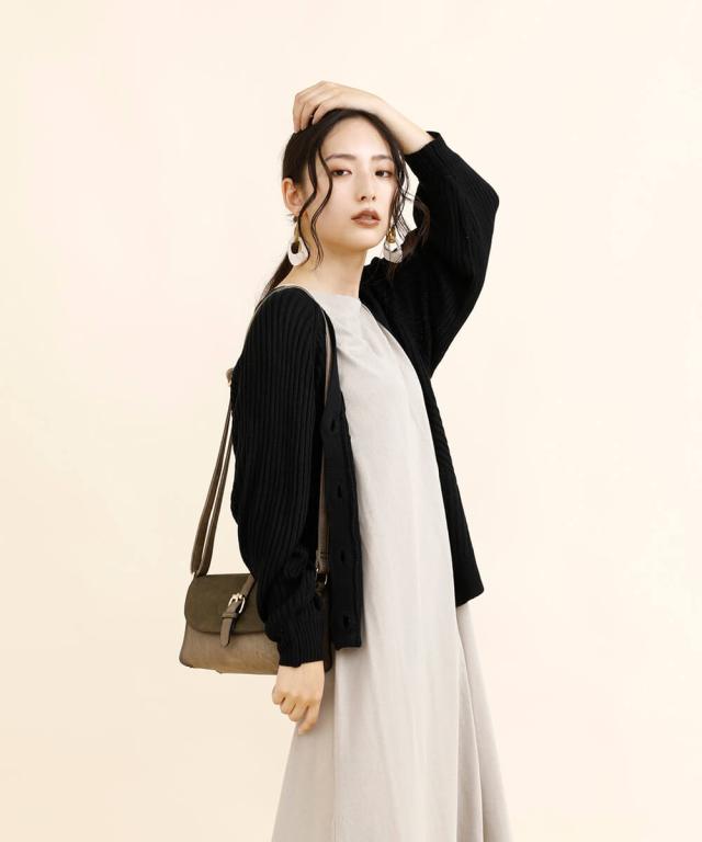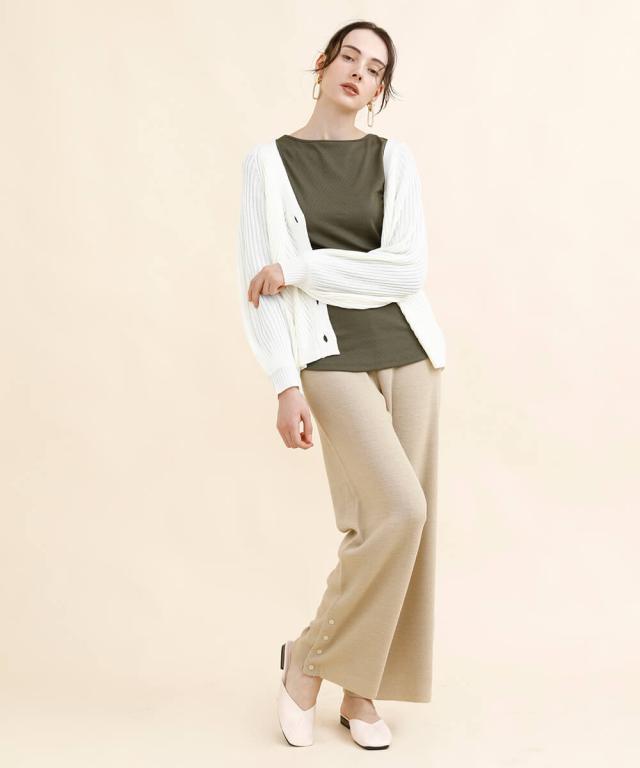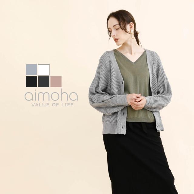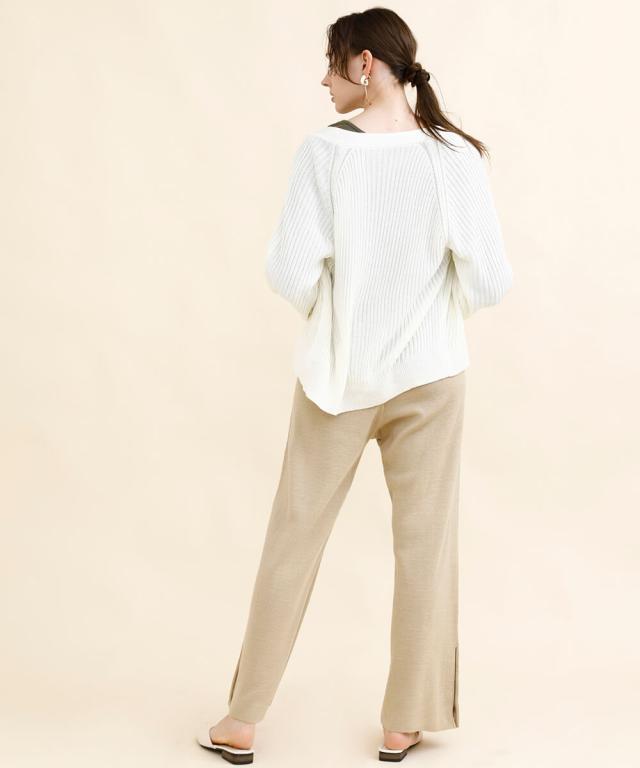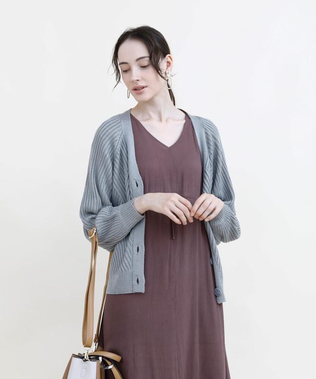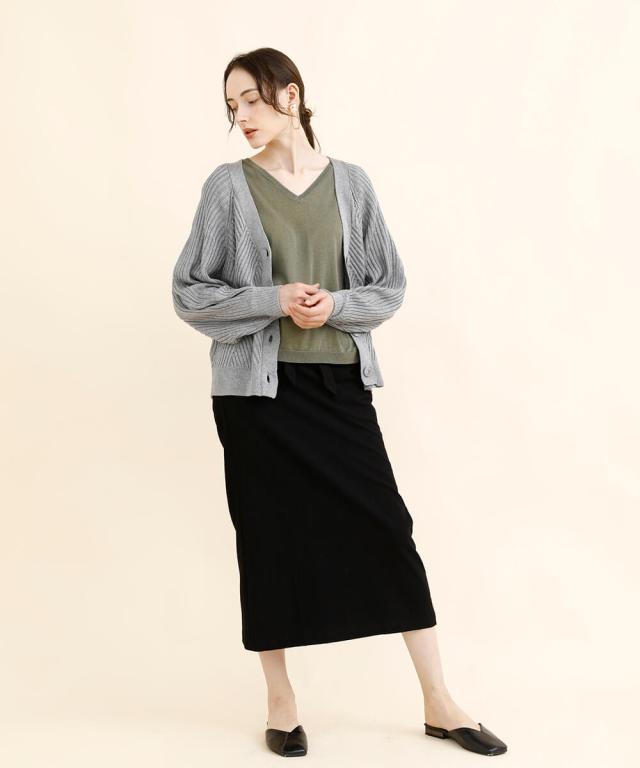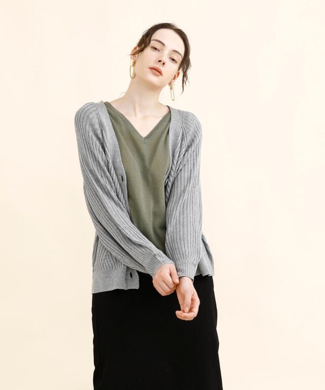 太めのリブモチーフで出来上がったカーディガン。少しストンッとしたシルエットで、