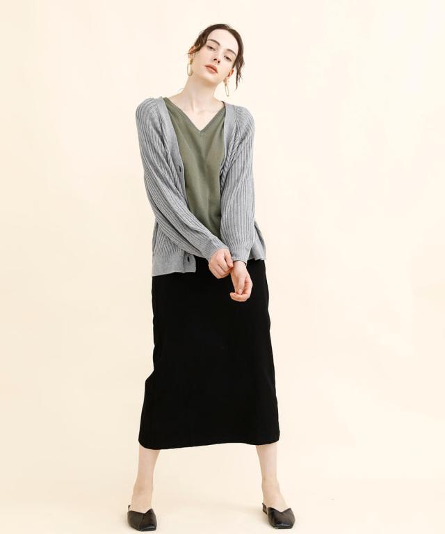 秋冬では一枚もっておけば必ず大活躍、スカートでもボトムでもOK。