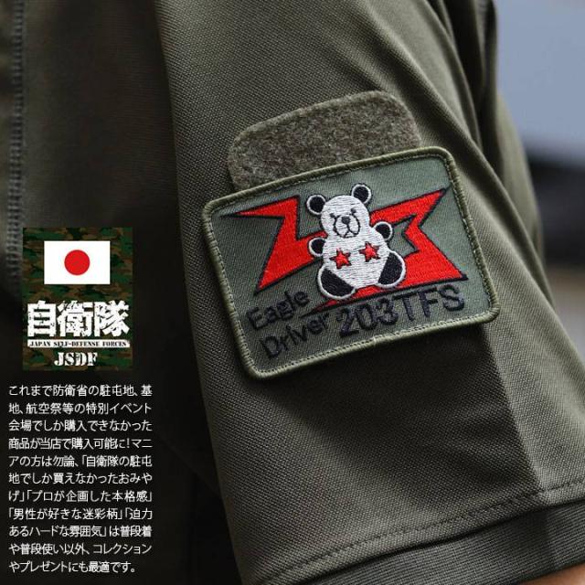 防衛省 自衛隊 グッズ 千歳基地パッチ 第203飛行隊 F-15 イーグルドライバー ワッペン 刺繍 オリーブ 男女兼用 かっこいい おしゃれ かわいい熊 航空自衛隊 空自 角型 両面ベルクロ マジックテープ付き PX限定 PA150-TN