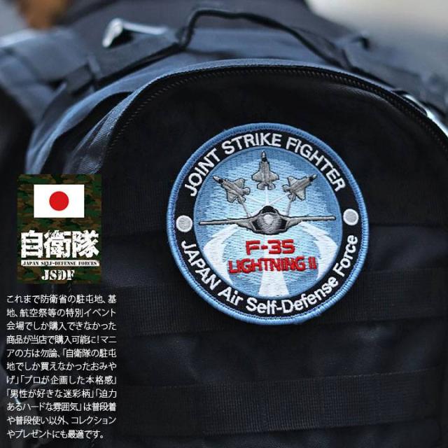 自衛隊 グッズ F-35 ライトニング ステルス戦闘機 ワッペン アップリケ パッチ 刺繍 水色 航空自衛隊 丸型 両面ベルクロ マジックテープ付き ハイビジュアル ハイビジ サバイバルゲーム タクティカル PX限定 PA160-TN