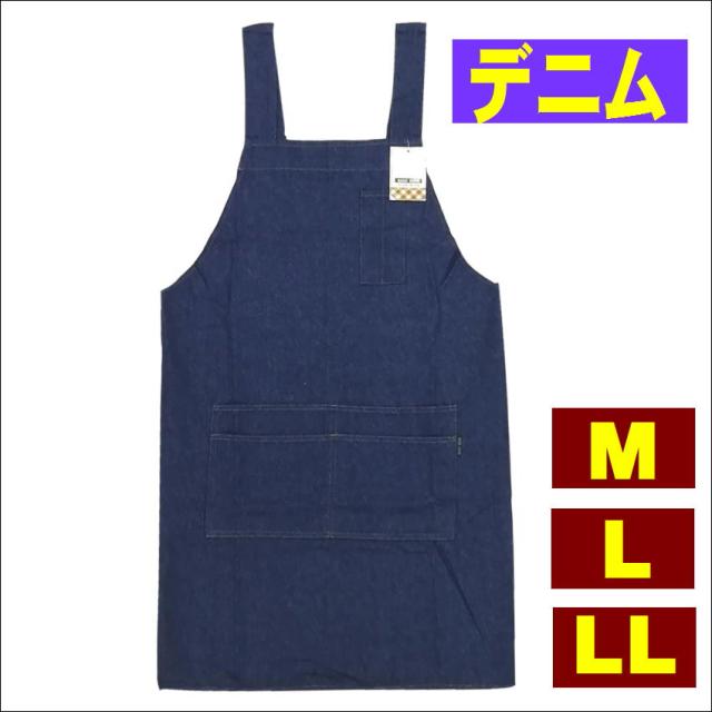 デニム エプロン H型 ワークエプロン シンプルエプロン ブルー 無地 ポケット付 男女兼用 ユニセックス 88206 M.L.LL