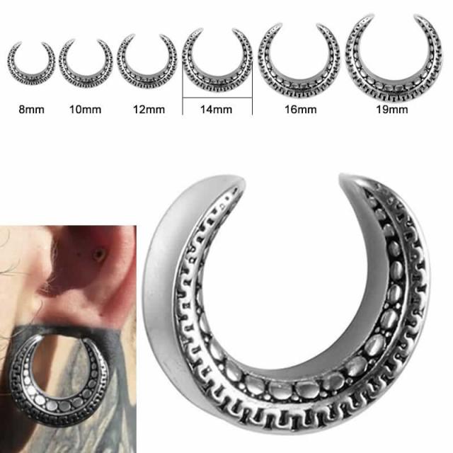 [2ゲージ 0ゲージ 00ゲージ 12ミリ 12.0mm 14ミリ 14.0mm彼氏 彼女 ペアルック 不気味 衣装 ハーフフレア 半円型 銀色 シルバー]