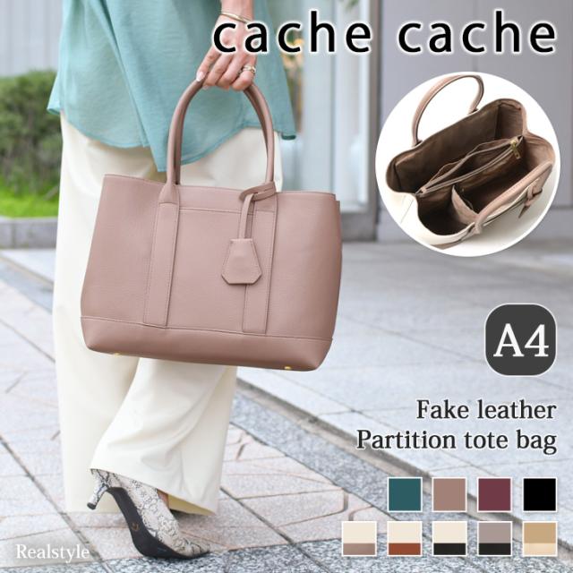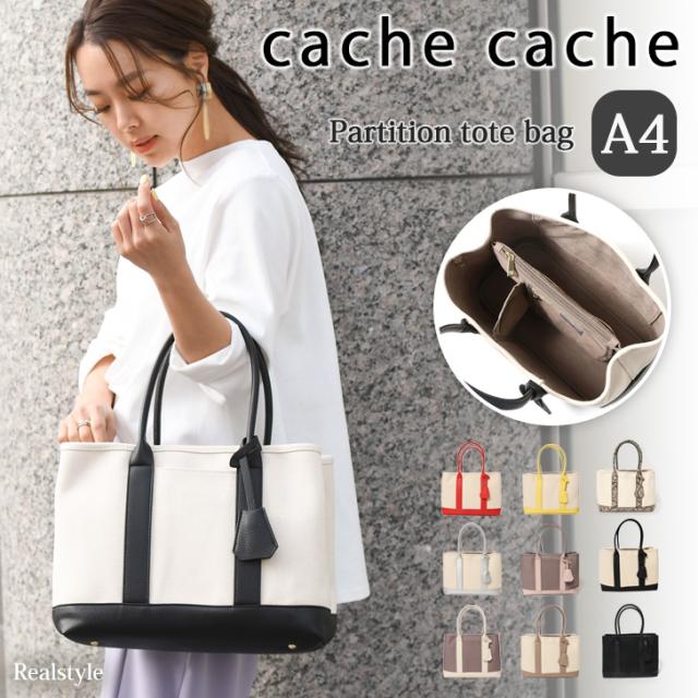 新作 トートバッグ ショルダー パーテーション 仕切り 2way レディース ハンドバッグ cache cache カシュカシュ キャンバス 小さめ