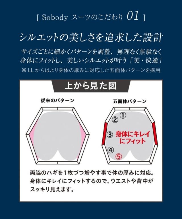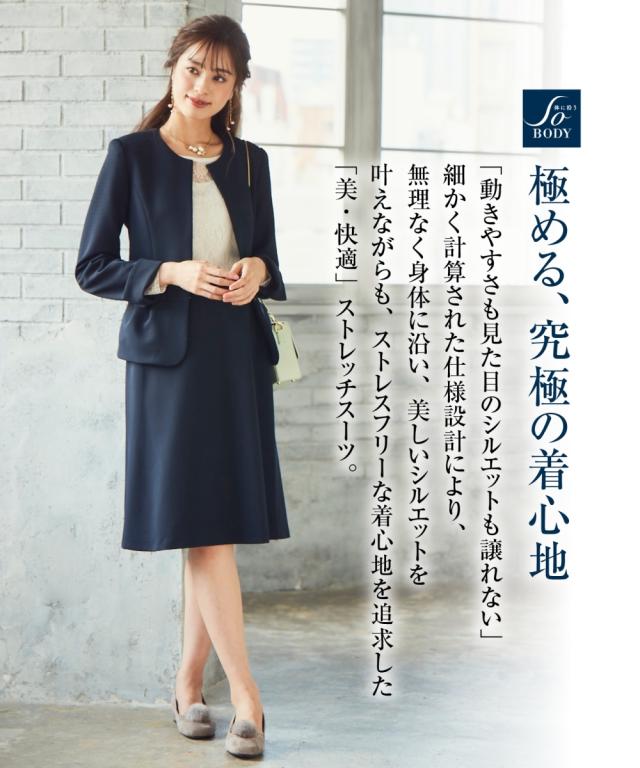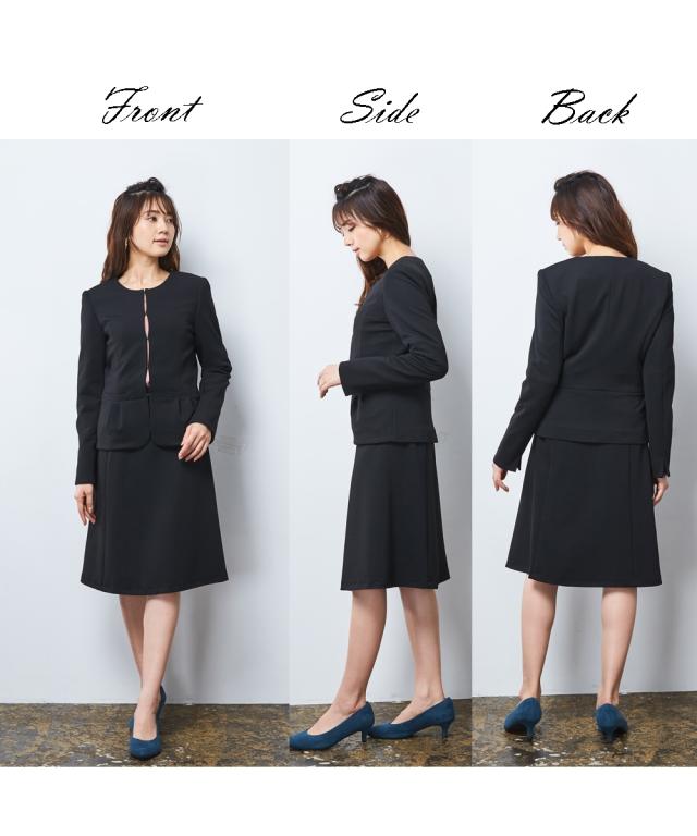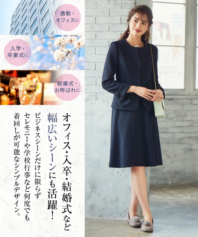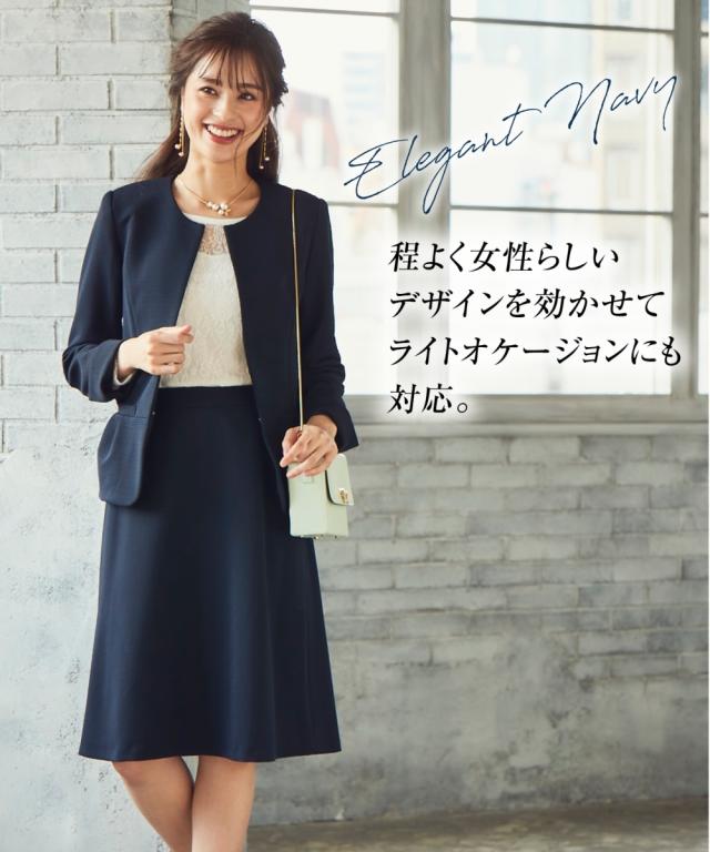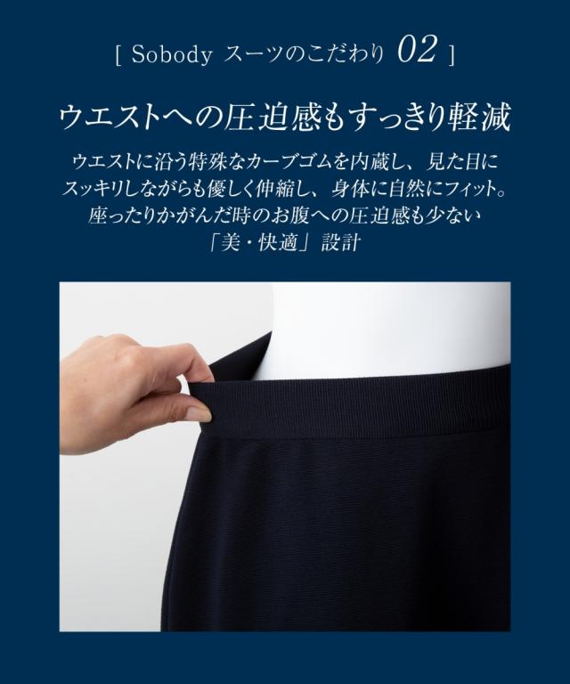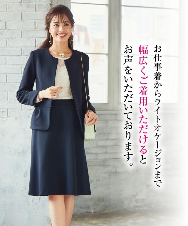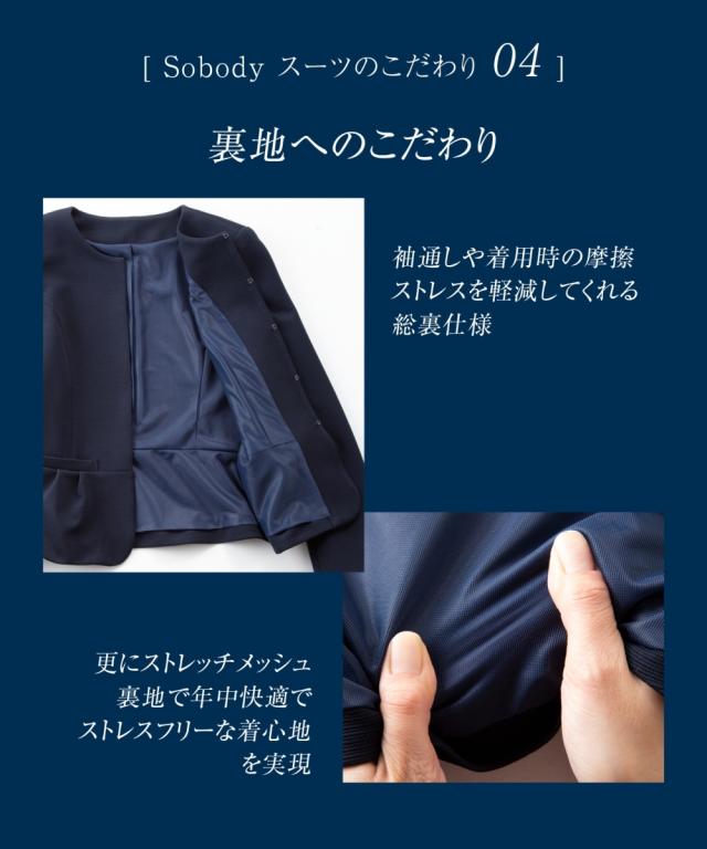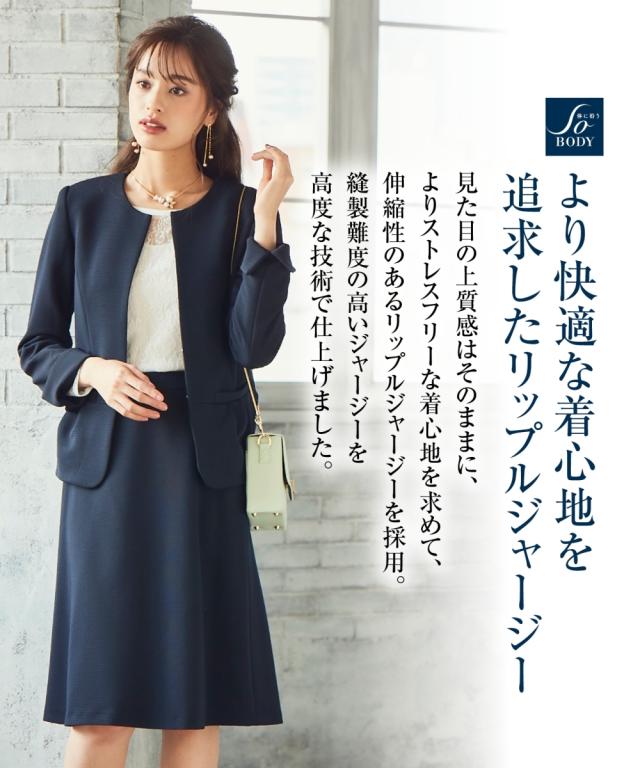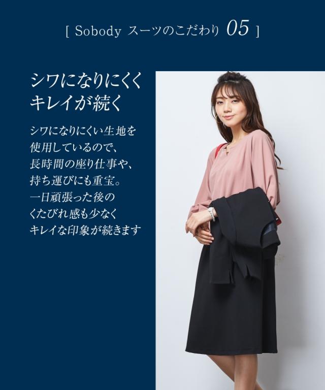 スーツ オフィス レディース SOBODY リップル ノーカラー スカート ネイビー/黒 S/M/L ニッセン