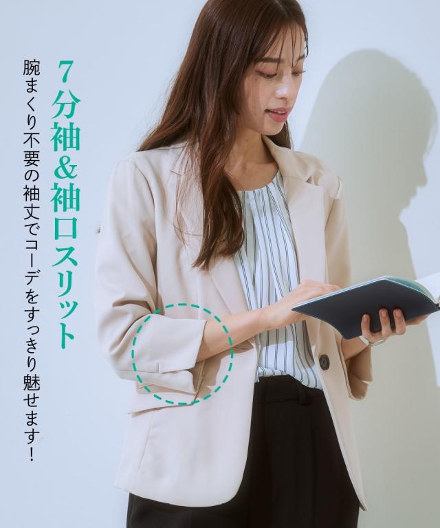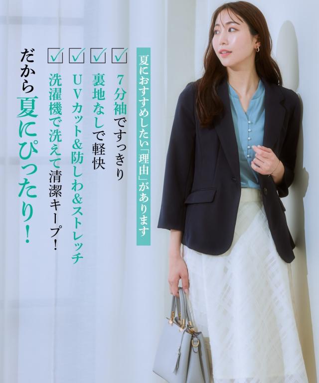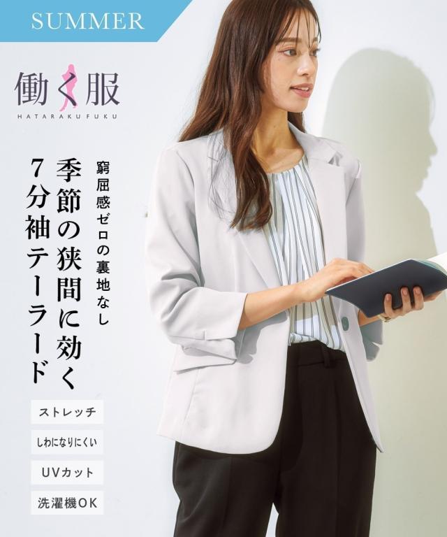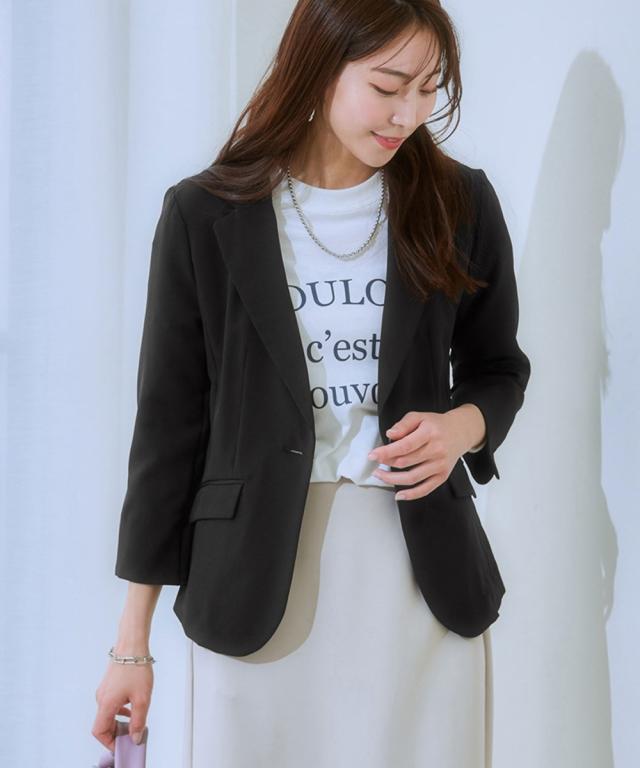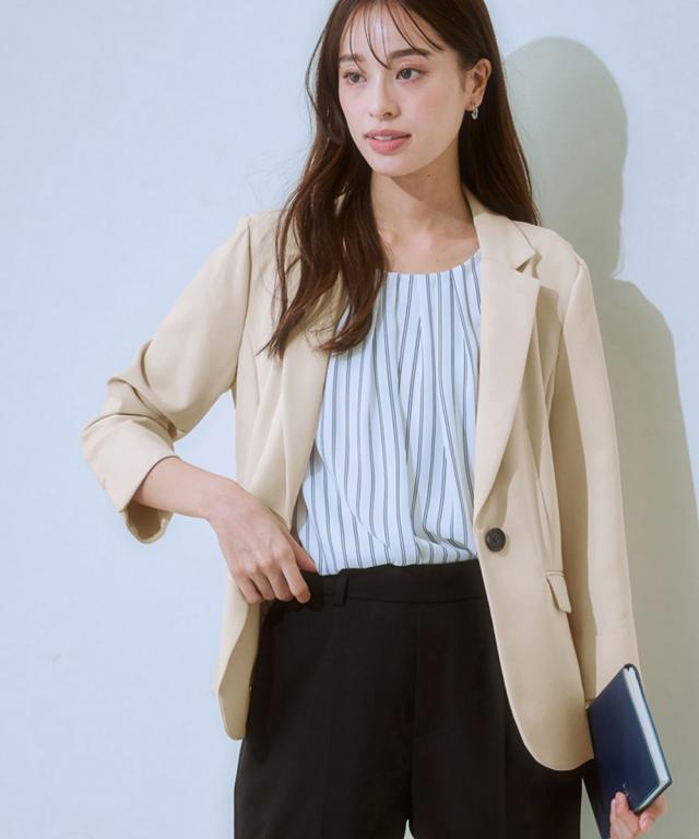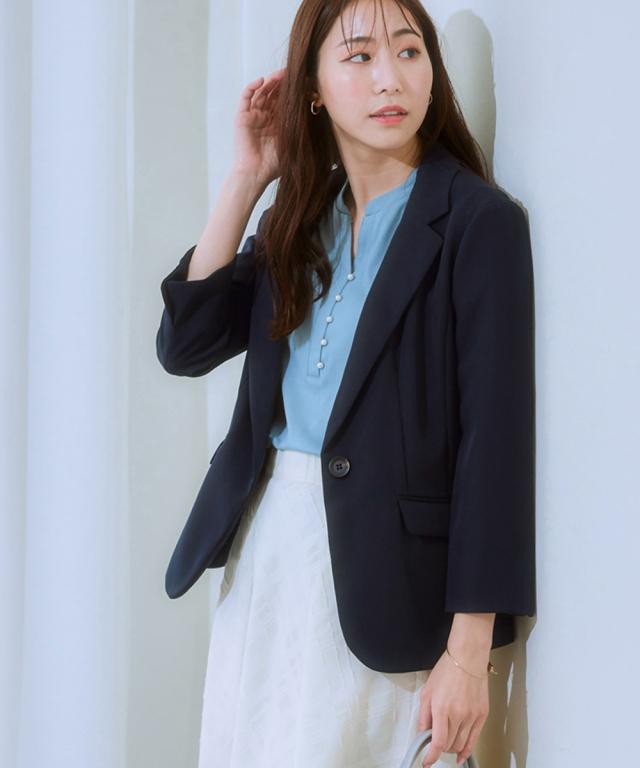 【洗えるダブルクロス】タテヨコストレッチUVカット7分袖テーラードジャケット
