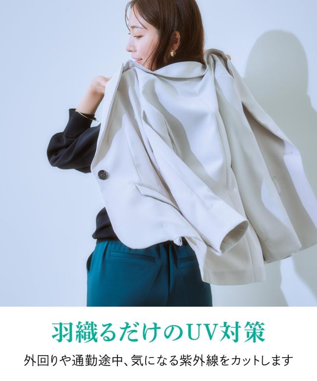 ★人気商品シリーズ7分袖バージョン登場!・お客様の声をもとにサイズ設計を見直しました?・ふっくらとしたとろみのあるダブルクロス素材を使用。羽織るだけで洗礼された大人レディに・伸びやか素材で着心地も抜群!ストレッチがあるので着疲れ知らず・洗濯機で丸洗いできるのでお手入れもらくらく。・UVカット機能付で気になる紫外線対策も◎・ONスタイルにもOFFスタイルにも着回せる優れものジャケットです♪