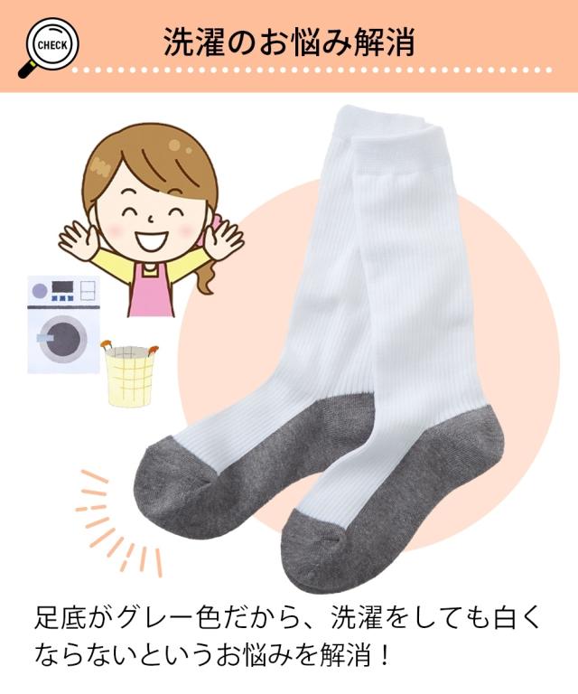 靴下 10足組 キッズ 底配色 ハイソックス 白 足底グレー 汚れが目立たない 15〜19cm/19〜22cm/22〜25cm 男の子 女の子 子供服 ジュニア 通学 通園 制服 ニッセン nissen