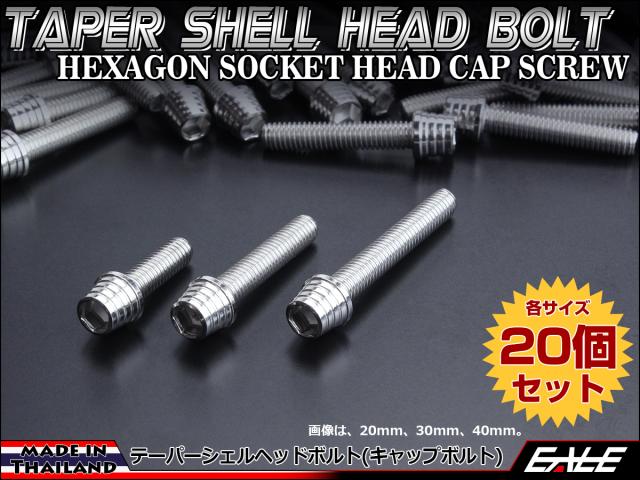 20個セット M6×80mm テーパーシェルヘッドボルト ステンレス製 キャップボルト クランクケースなどのエンジン周りに シルバー TB0262-20SET