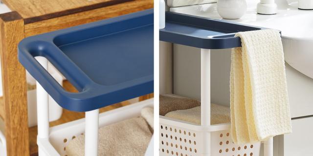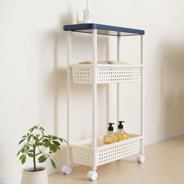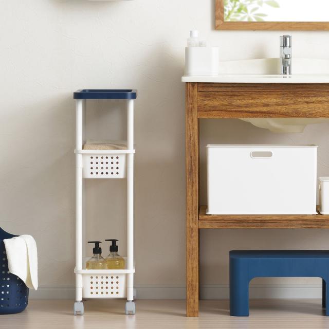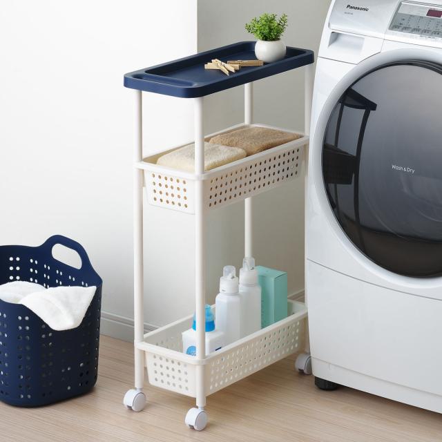洗濯物や洗濯小物の収納に便利なシンプデザインのランドリーワゴンです。幅約21.5cmのスリム設計なので、洗濯機横の隙間などにすっきりと収納でき、スペースを有効活用できます。