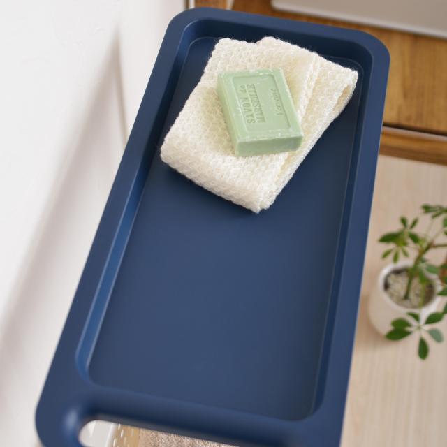 ワゴンを引っ張るときに便利な取っ手が付いています。サッと片手でワゴンを引くことができます。また、タオルを掛ければタオルバーとしても使えます。