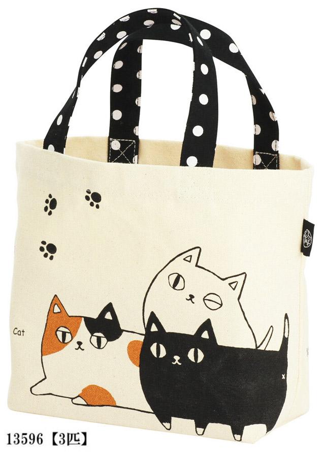 トートバッグ 猫 猫柄 猫3兄弟 キャンバストート ミニトート ランチトート 布バッグ 綿 コットン キャット 手提げ 猫雑貨 猫グッズ