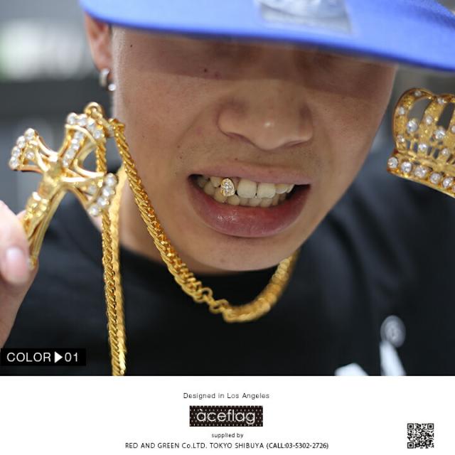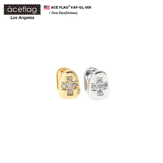 【38%OFF】エースフラッグ ACEFLAG 着ける金歯 カスタム グリル グリルズ キャップ式 差し歯 メンズ 金 銀 b系 ヒップホップ ダイヤモンドカット 十字架 クロス ジルコニア 1本 ゴールド シルバー ラッパー AF-GL-006