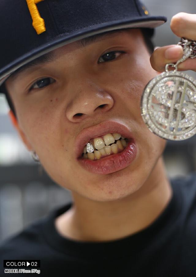取り外しが可能な歯のキャップ式アクセサリー。マスターP、オールド・ダーティ・バスタードなどのラッパーに代表されるように80年代後半から90年代前半のHIPHOPムーブメントにより「力と富の象徴」として流行し、近年では、数多くのハリウッドセレブ、ブラック系アーティストに愛用されている定番ジュエリー。
