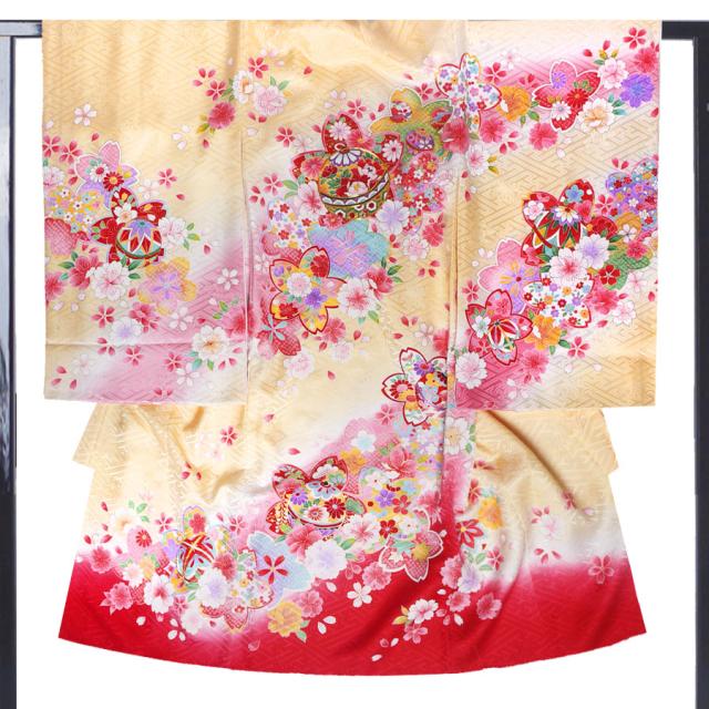 女児 産着 レンタル お宮参り 着物 帽子 よだれかけ セット 女の子 貸衣装 和服 祝い着 初着 産着 往復送料無料 鞠 桜 黄