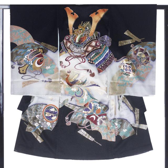 男児 熨斗目 レンタル お宮参り 着物 帽子 よだれかけ セット 男の子 貸衣装 和服 祝い着 初着 産着 往復送料無料 黒 兜