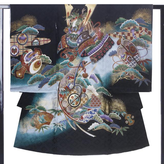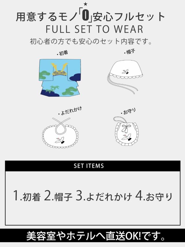 男児 熨斗目 レンタル お宮参り 着物 帽子 よだれかけ セット 貸衣装 和服 祝い着 初着 産着 往復送料無料 黒 兜