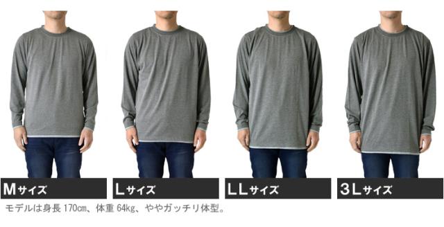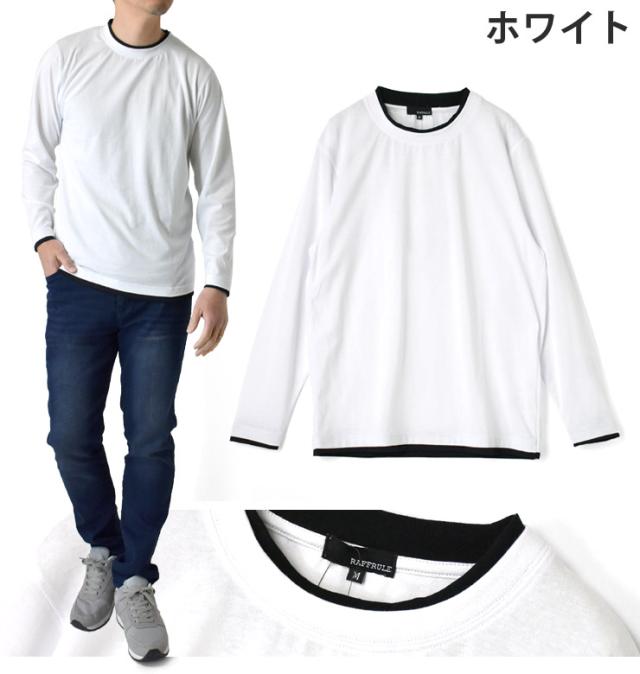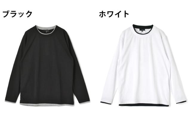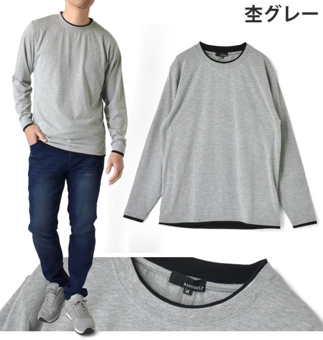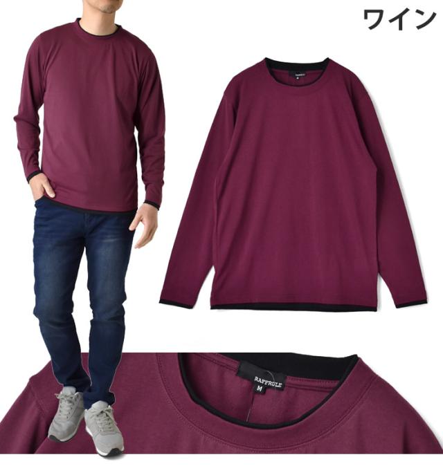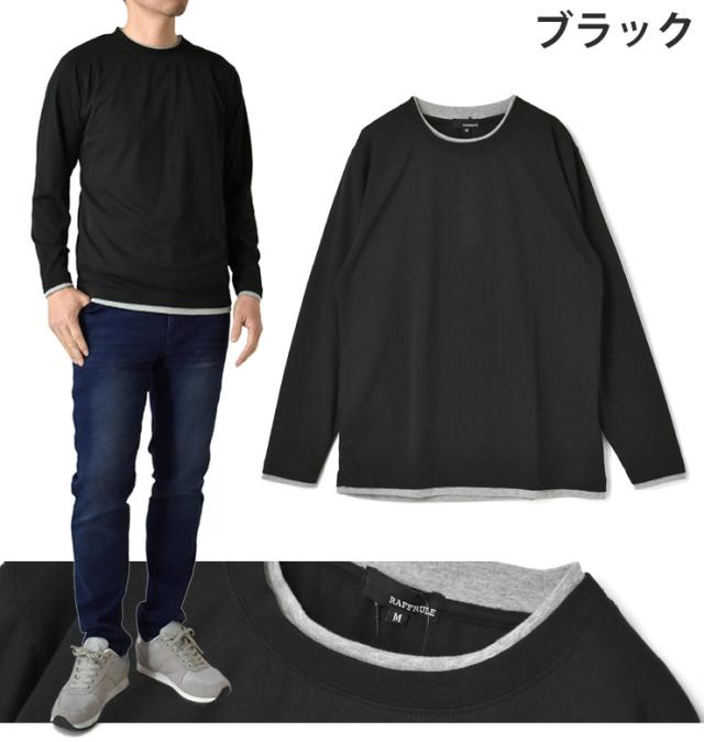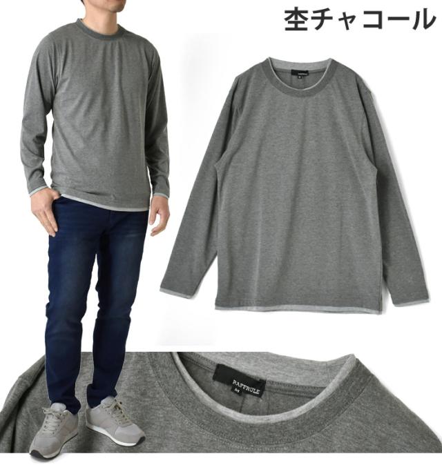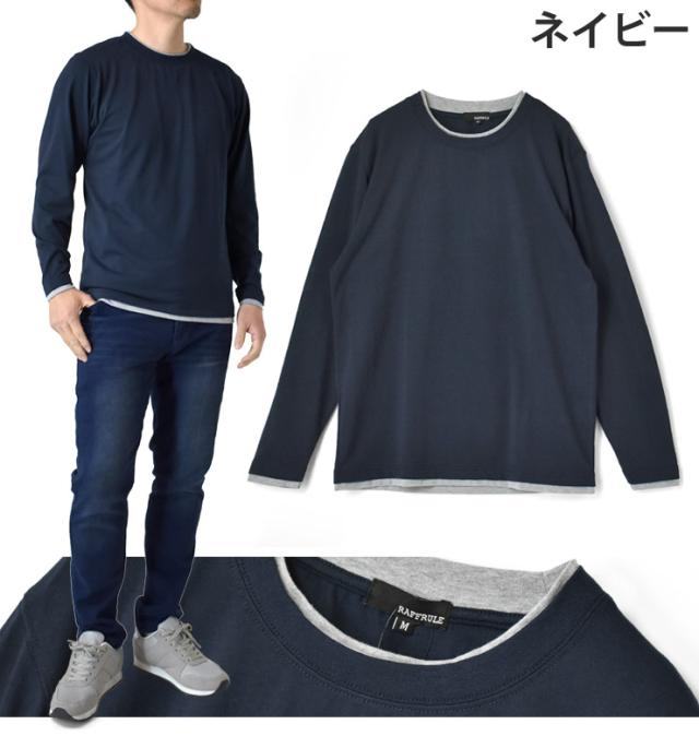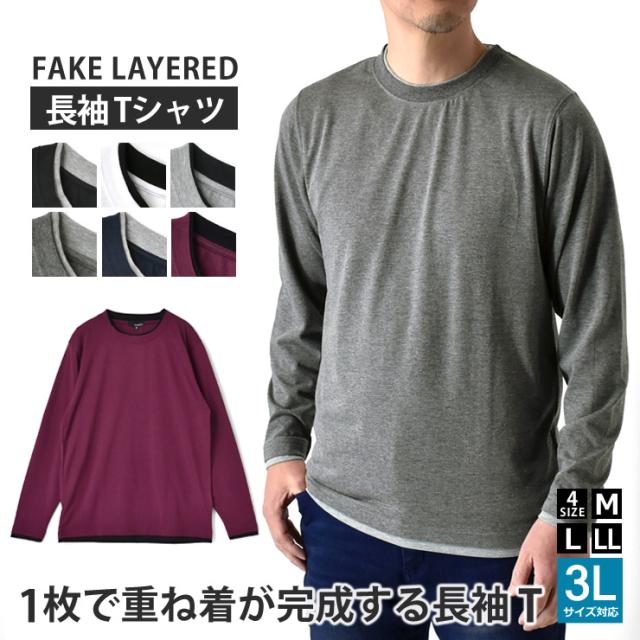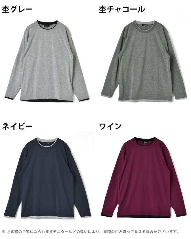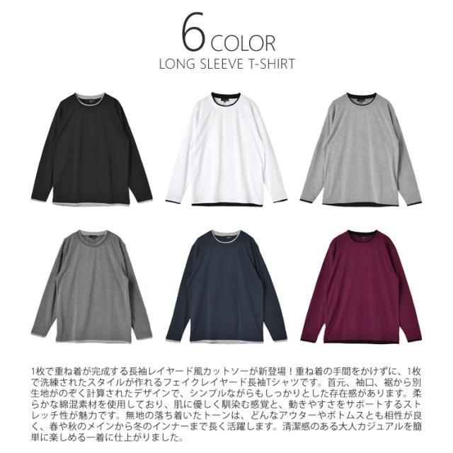 レイヤード風 長袖 Tシャツ メンズ フェイクレイヤード 重ね着風 カットソー 無地 クルーネック 柔らか 綿混 ストレッチ 春 秋 冬 M L LL 3L ブラック ホワイト 杢グレー 杢チャコール ネイビー ワイン【C3J】【送料無料】【メール便2】【メンズ】【mens】 春新作