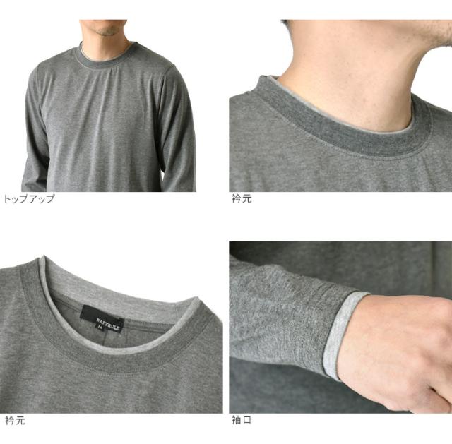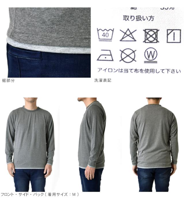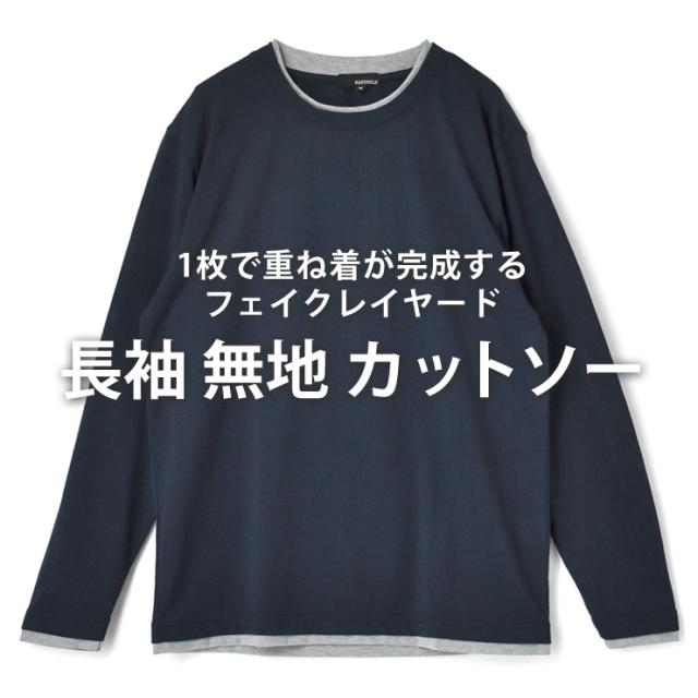 フェイクレイヤード クルーネック 無地 長袖 カットソー【C3J】