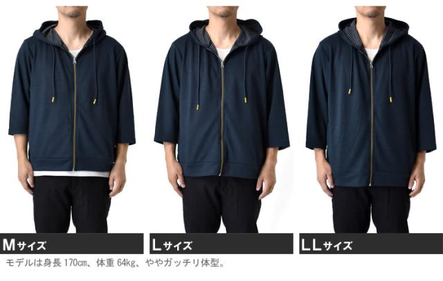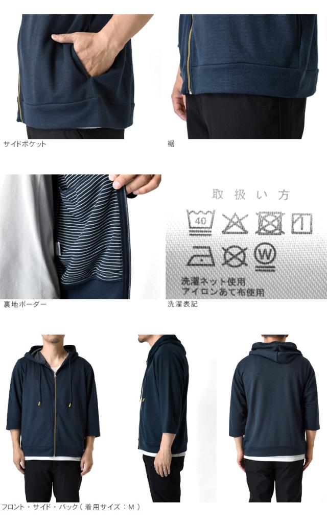 接触冷感 半袖パーカー メンズ 7分袖 鹿の子 裏ボーダー フルジップ 夏パーカー 日よけ 紫外線対策 吸汗速乾【C3K】【送料無料】【ゆうパケット】 冬新作