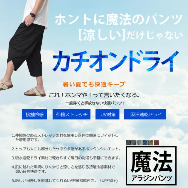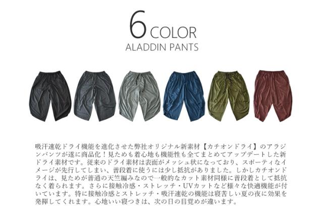 吸汗速乾ドライ機能を進化させた弊社オリジナル新素材【カチオンドライ】のアラジンパンツ