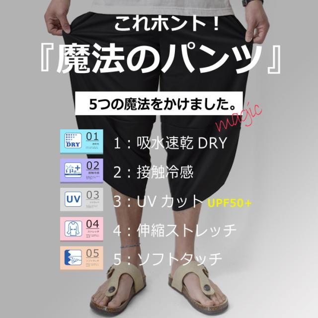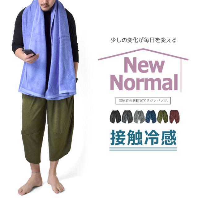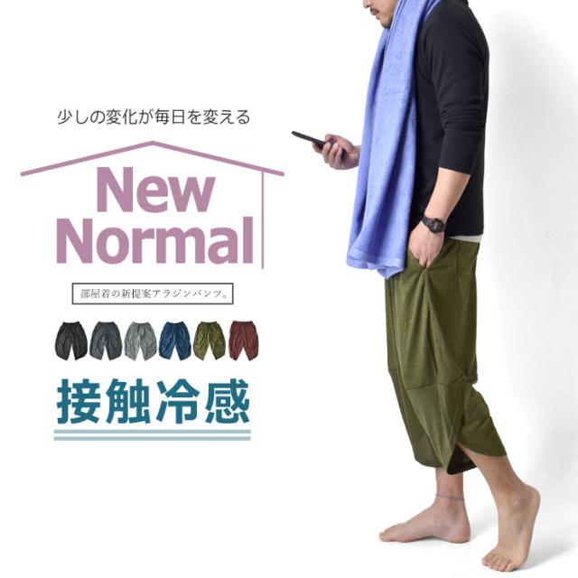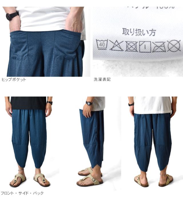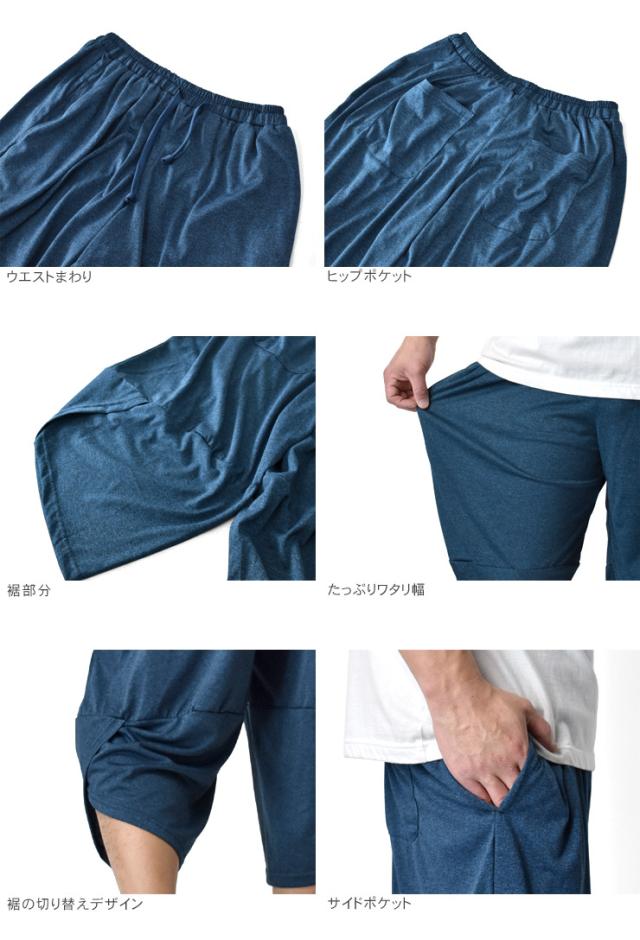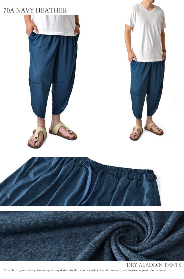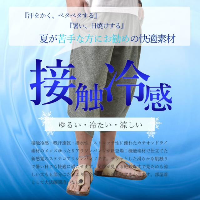 アラジンパンツ カチオンドライ 吸汗速乾 接触冷感 UVカット UPF50+ 7分丈 パジャマ 部屋着 ハーフパンツ【H3M】【送料無料】【メール便2】【メンズ】【mens