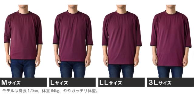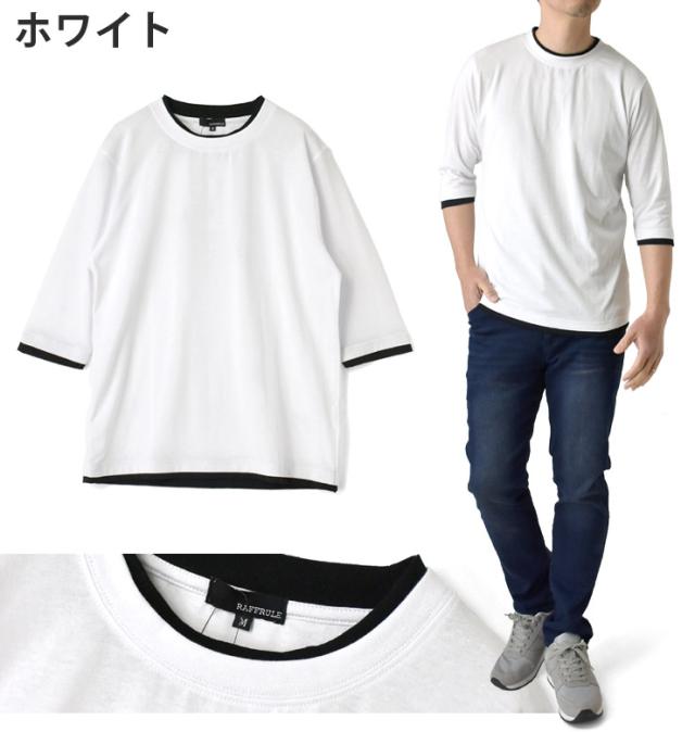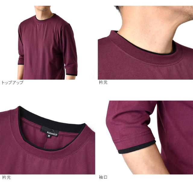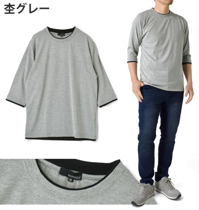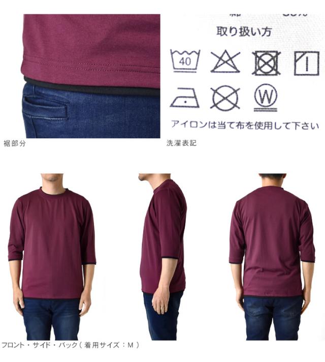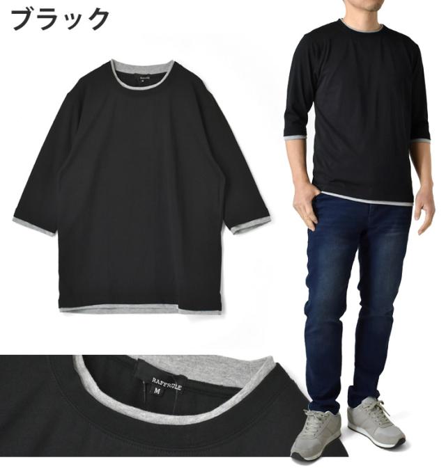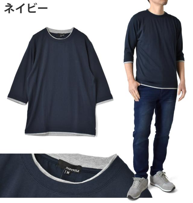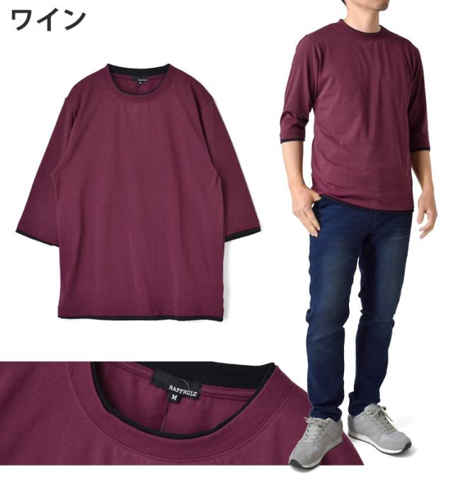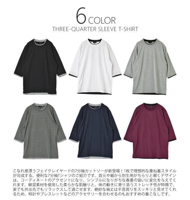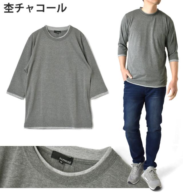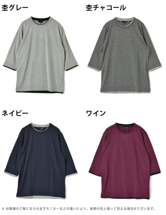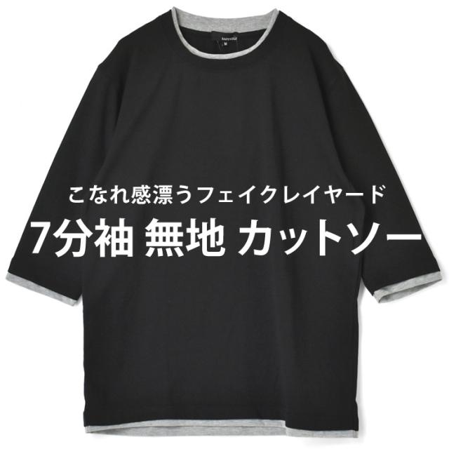 レイヤード風 7分袖 Tシャツ メンズ フェイクレイヤード 重ね着風 カットソー 無地 クルーネック 柔らか 綿混 ストレッチ 春 夏 秋 M L LL 3L ブラック ホワイト 杢グレー 杢チャコール ネイビー ワイン【D3N】【送料無料】【メール便2】【メンズ】【mens】 春新作