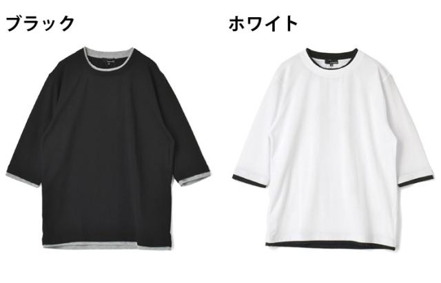 フェイクレイヤード クルーネック 7分袖 無地 カットソー【D3N】