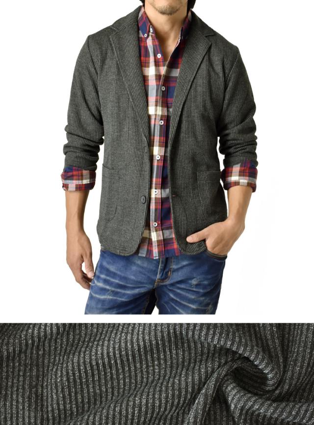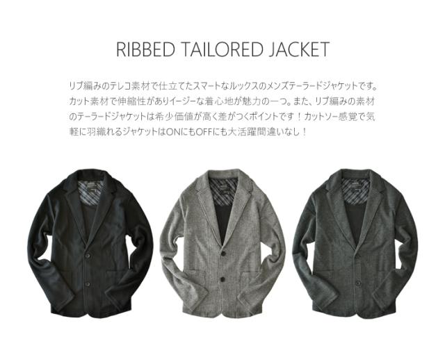 リブ編みのテレコ素材で仕立てたスマートなルックスのメンズテーラードジャケットです。カット素材で伸縮性がありイージーな着心地が魅力の一つ。また、リブ編みの素材のテーラードジャケットは希少価値が高く差がつくポイントです!カットソー感覚で気軽に羽織れるジャケットはONにもOFFにも大活躍間違いなし!