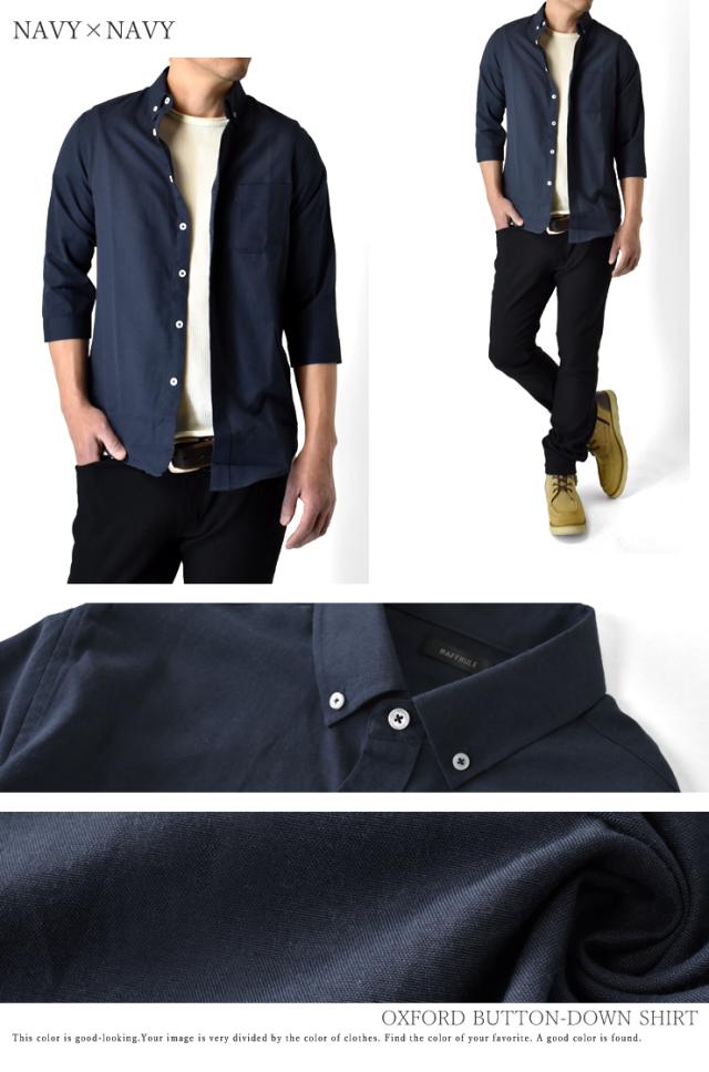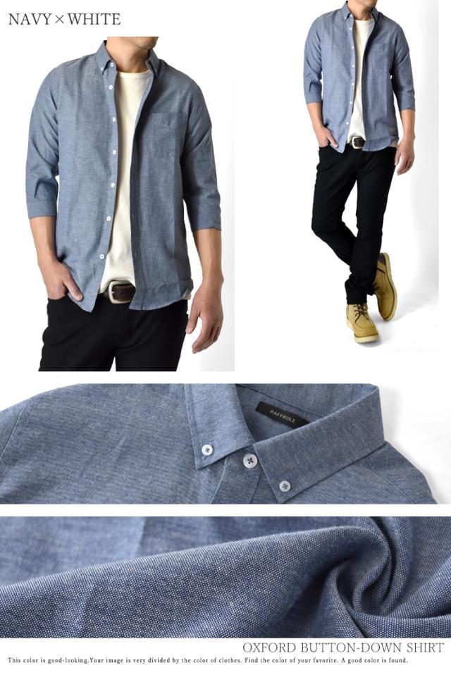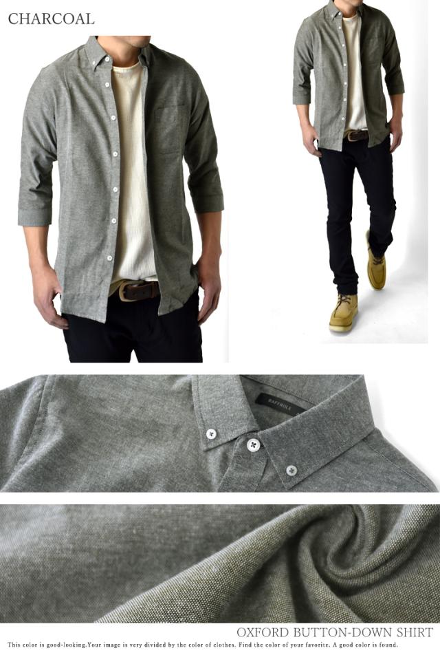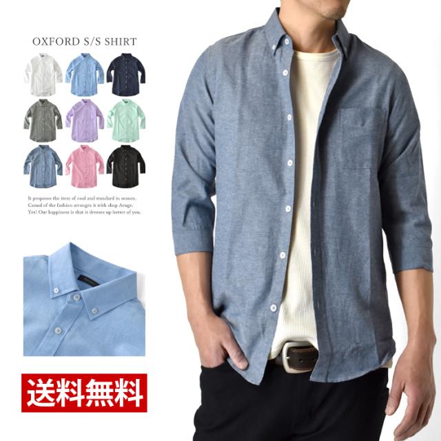 オックスフォードシャツ メンズ カジュアルシャツ 冬新作 7分袖シャツ TC ボタンダウン【B6M】【送料無料】【ゆうパケット】【メンズ】 父の日 ギフト 七分丈 七分袖 冬新作