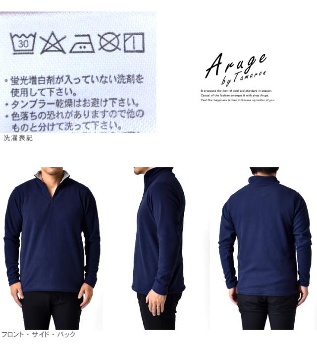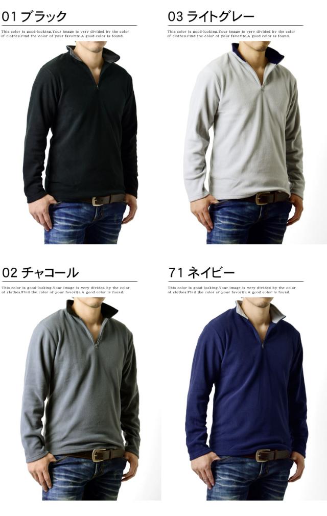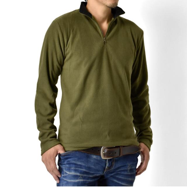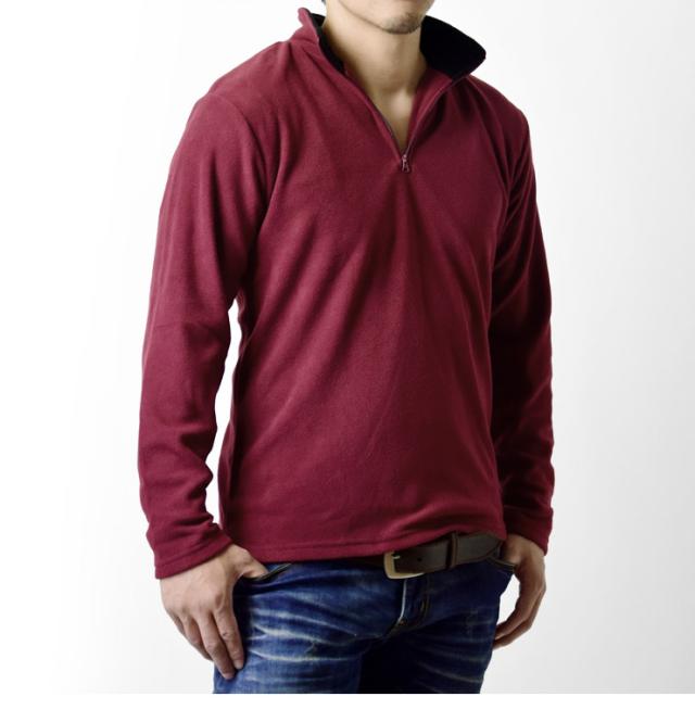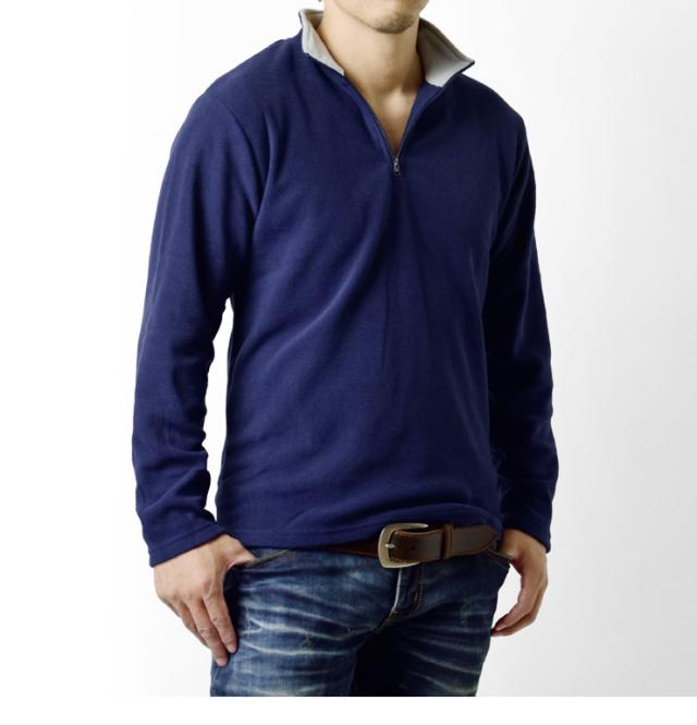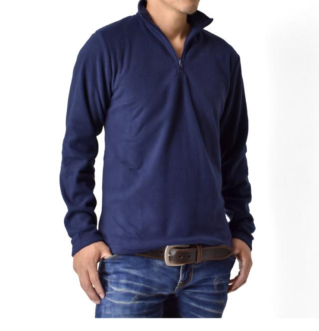 冬の傾向と対策!フリース素材のソフトな感触が心地良いメンズハーフジップフリーストップス!見た目にも暖かく仕上がったフリース素材は、柔らかい肌触りでバツグンの着心地だから何度でも袖を通したくなります。また、速乾性にも優れているので洗濯物が乾きにくくなる冬場に嬉しい!シンプルながら寒い冬場の強い味方です!