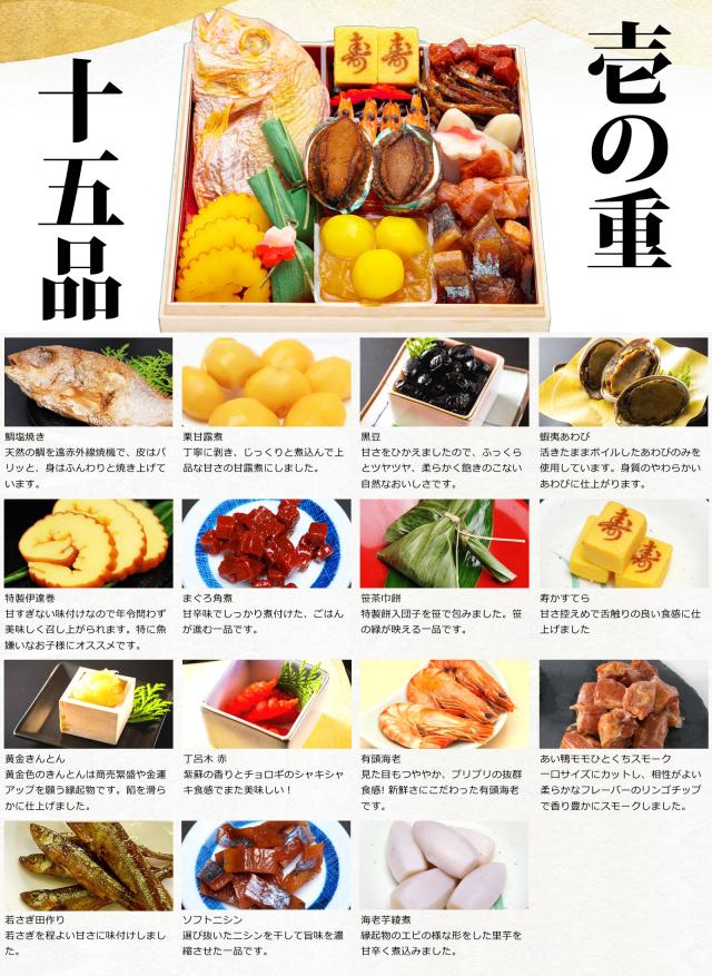 注意事項 当店のおせち料理は細心の注意を払って製造をしておりますが、ご高齢の方やお子様におかれましては、お餅系やえびくるみなどの一部商品はお召し上がりいただく際に、少量ずつ食べることでより安全にお召し上がりいただけます。