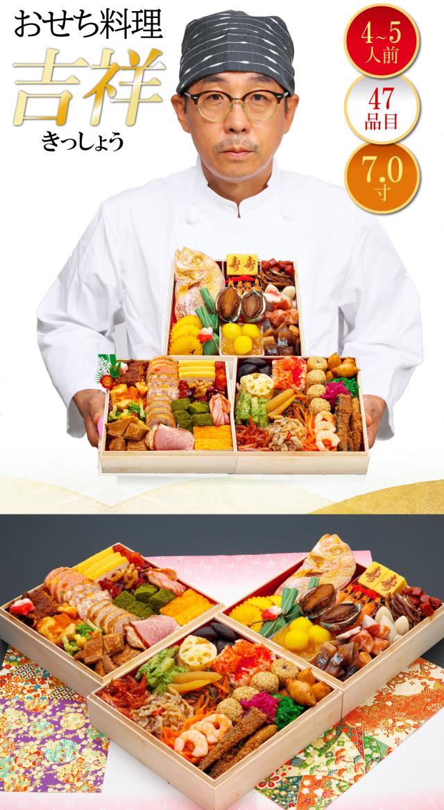 三段重おせち「吉祥」 7.0寸4人前5人前47品入 全国送料無料 定番 高級 有名店 おせち