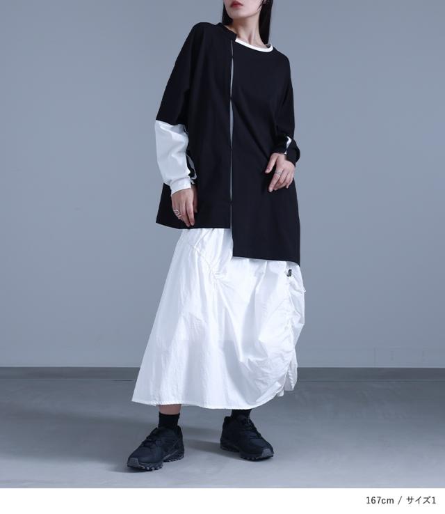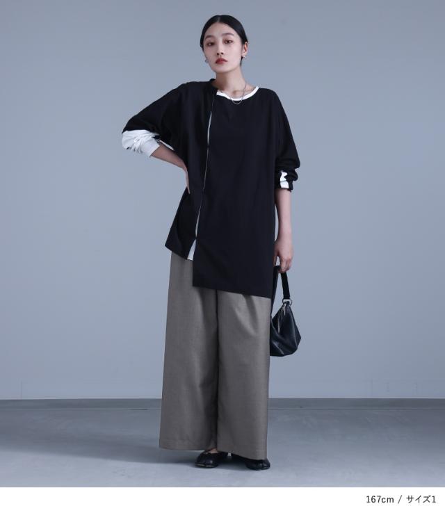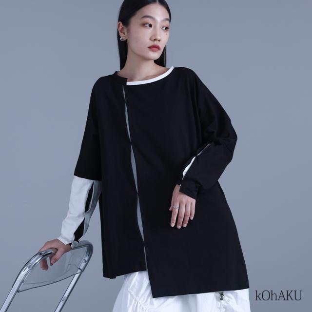 『kOhAKUアシンメトリー配色タックカットソー』 【メール便不可】【20】[カットソー レディース ユニセックス トップス ロンT 長袖 アシンメトリー タック 綿100% おうちで洗える コハク tck0108]