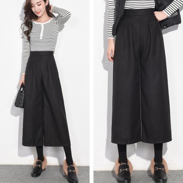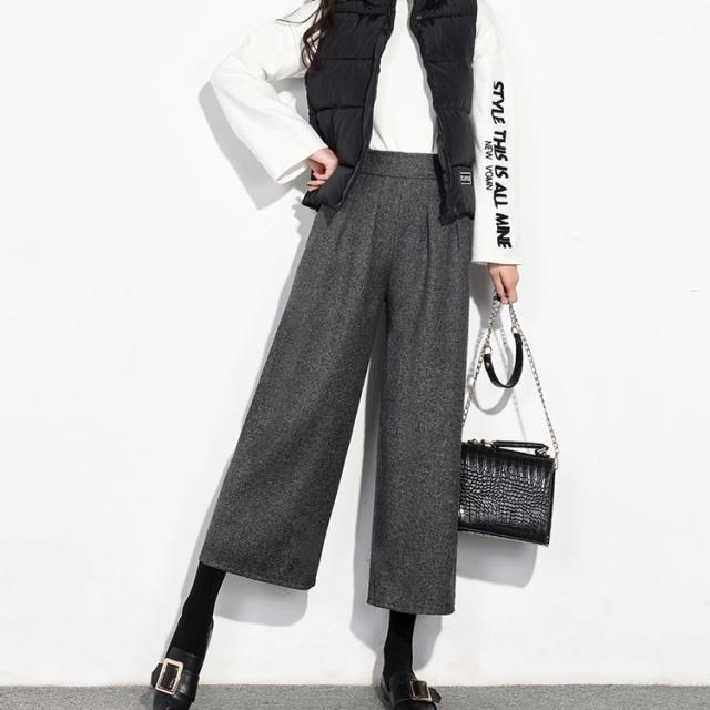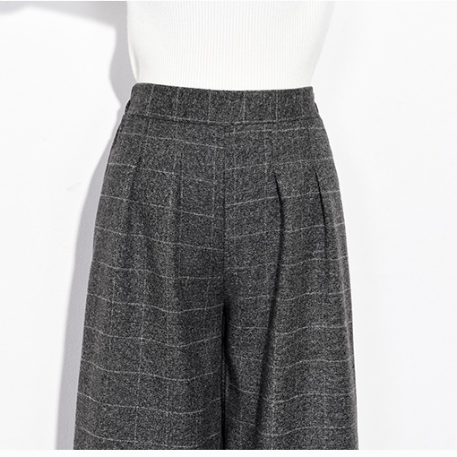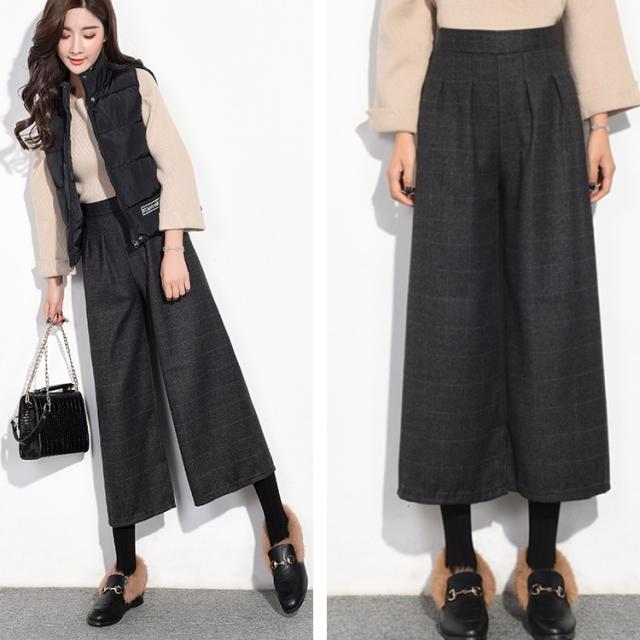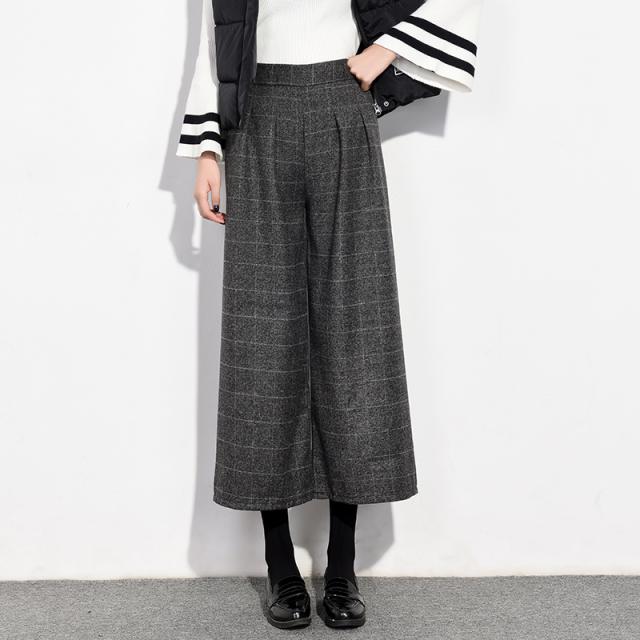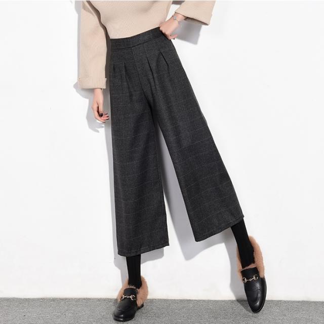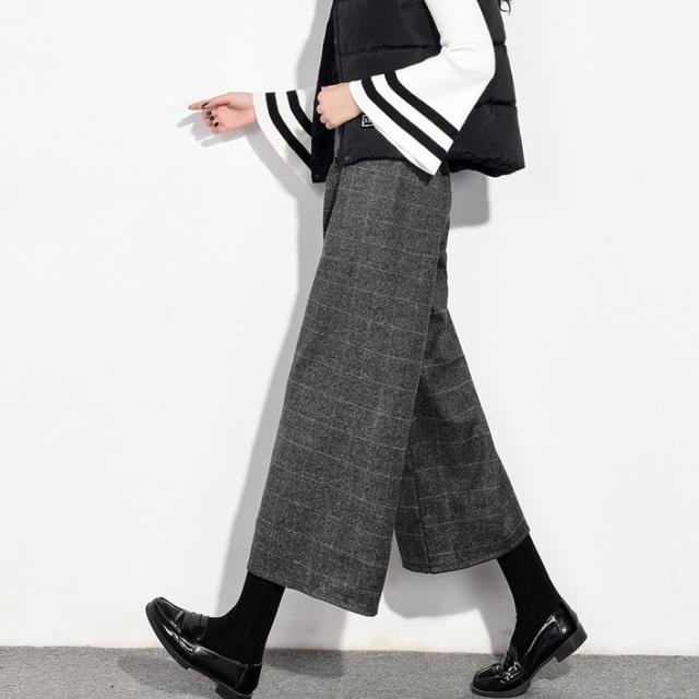 ハイウエスト ワイドパンツ レディース 大きいサイズ 秋 チェック 無地 ストライプ 4色 ワイドレッグパンツ チェック柄 ガウチョパンツ スカンツ ウエストゴム 体型カバー お出かけ 通勤 カジュアル フェミニン オシャレ