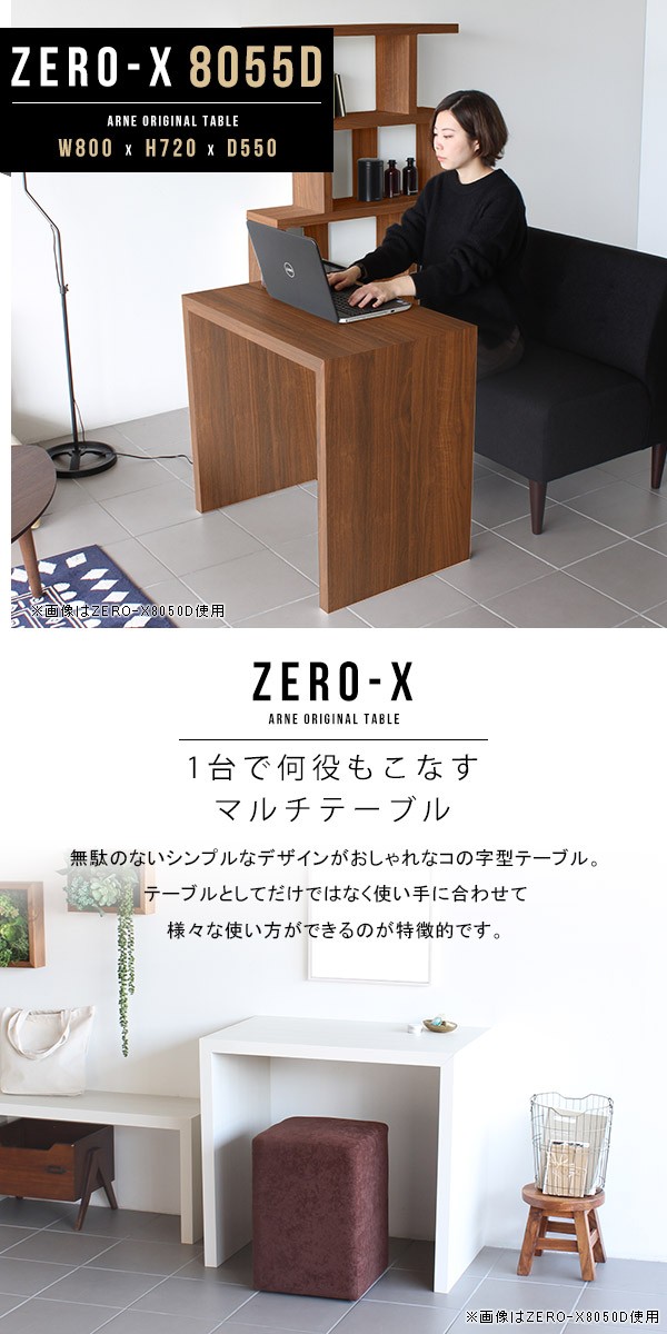 デスク 机 ダイニングテーブル 木製 食卓テーブル 80cm コの字 つくえ 作業台 カフェテーブル おしゃれ Zero-X 8055D ●