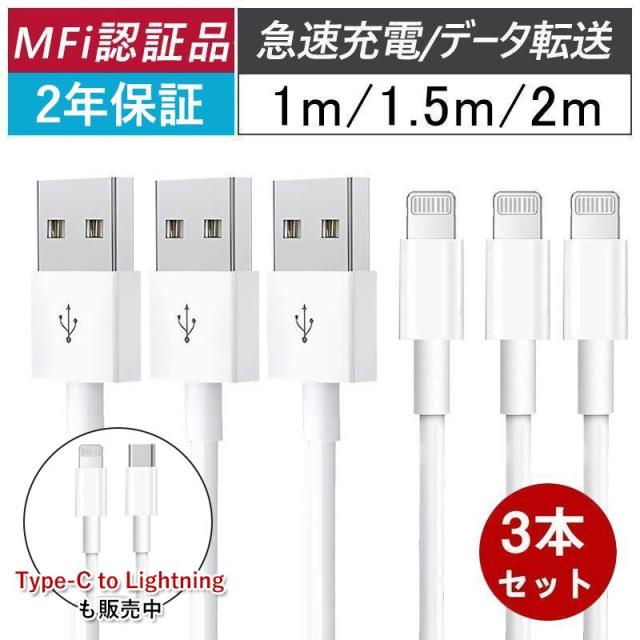 iPhone 充電ケーブル 純正 1m 1.5m 2m 3m MFi 認証ケーブル iphone ケーブル ライトニングケーブル 丈夫 細い 断線に強い