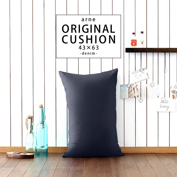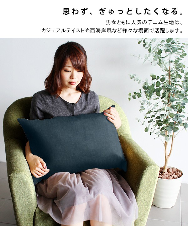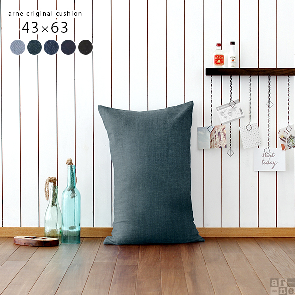 クッション 長方形 デニムクッション 43×63 63cm ブルー おしゃれ シンプル 中綿付き リビング 枕 △