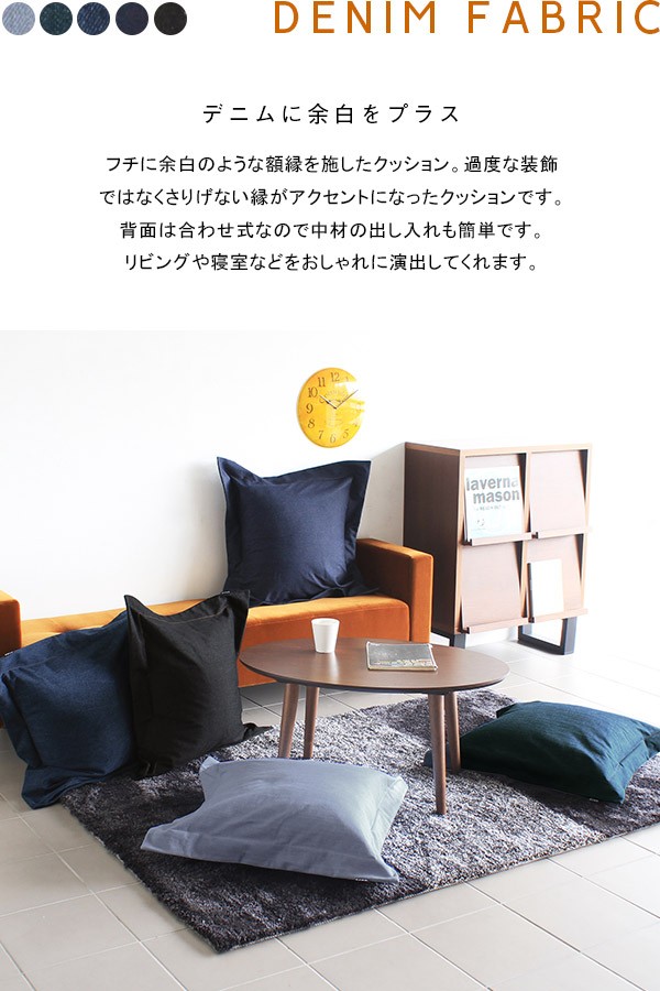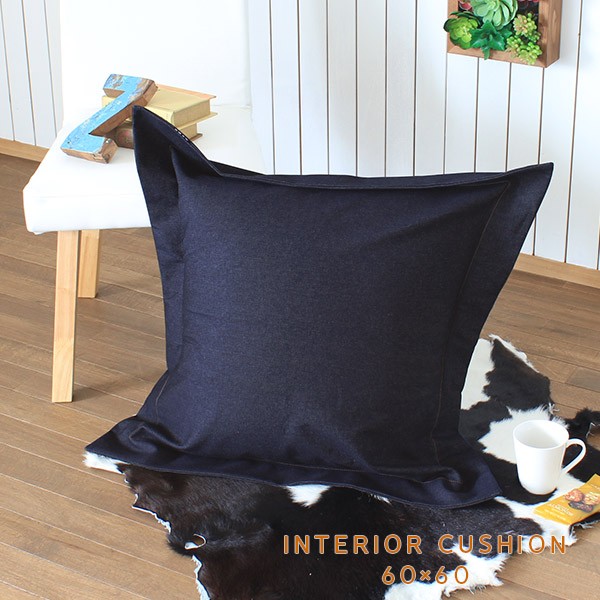 クッション 大きい 60×60 正方形 デニム 西海岸 60cm おしゃれ 日本製 北欧 中綿付き 》
