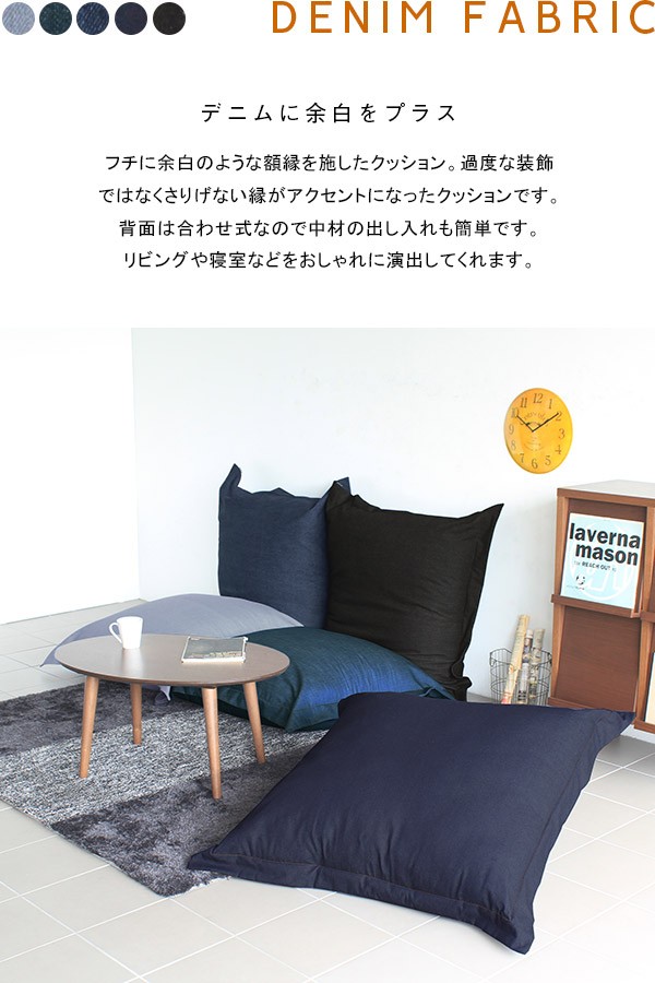 クッション 大きい 特大 正方形 110×110 デニム 西海岸 おしゃれ 日本製 北欧 中綿付き 》