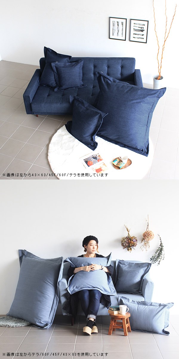 クッション デニム 西海岸 長方形 43×63 おしゃれ 日本製 北欧 枕カバー 中綿付き 》