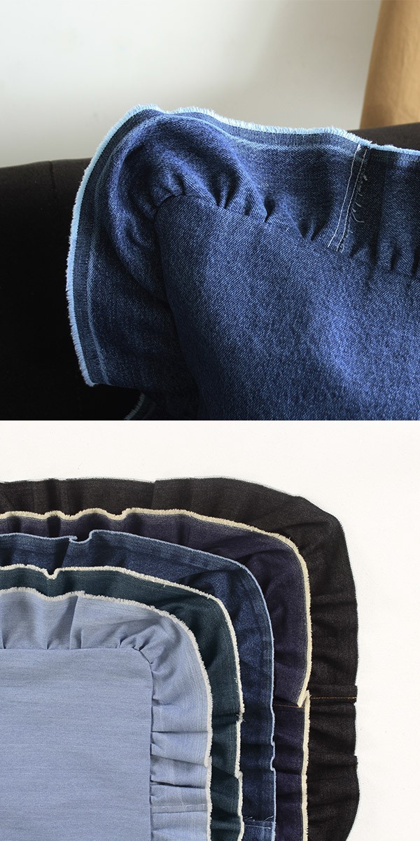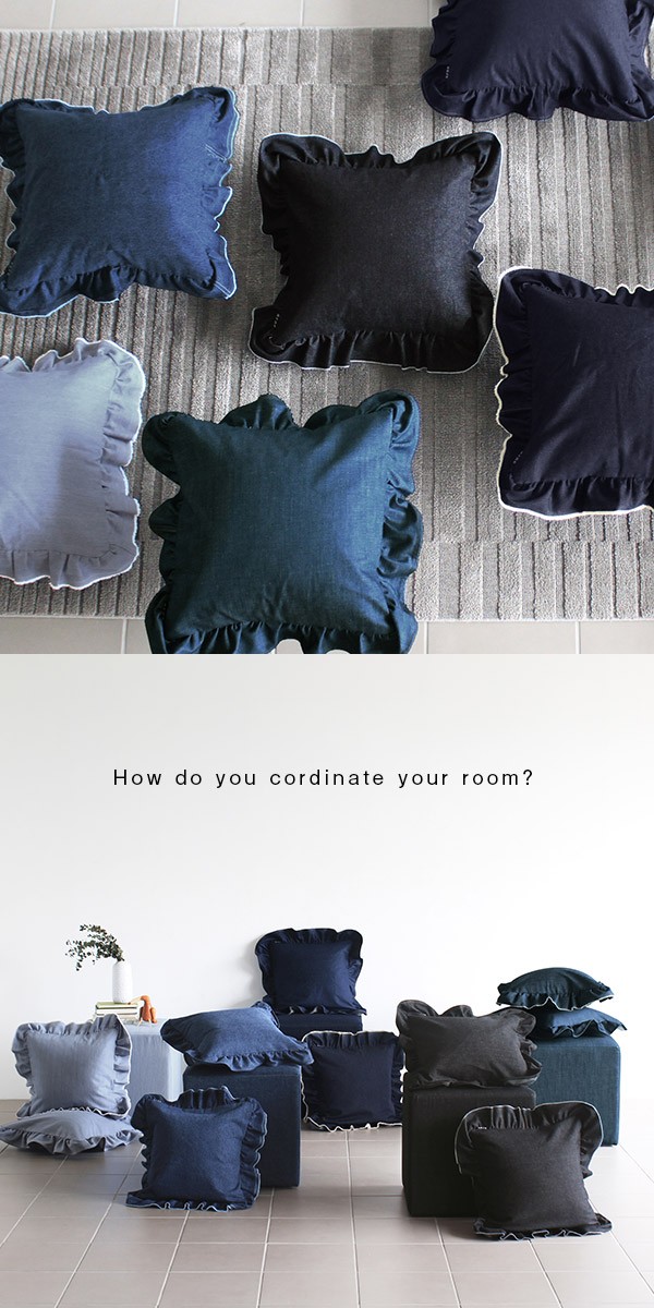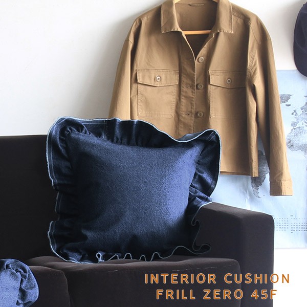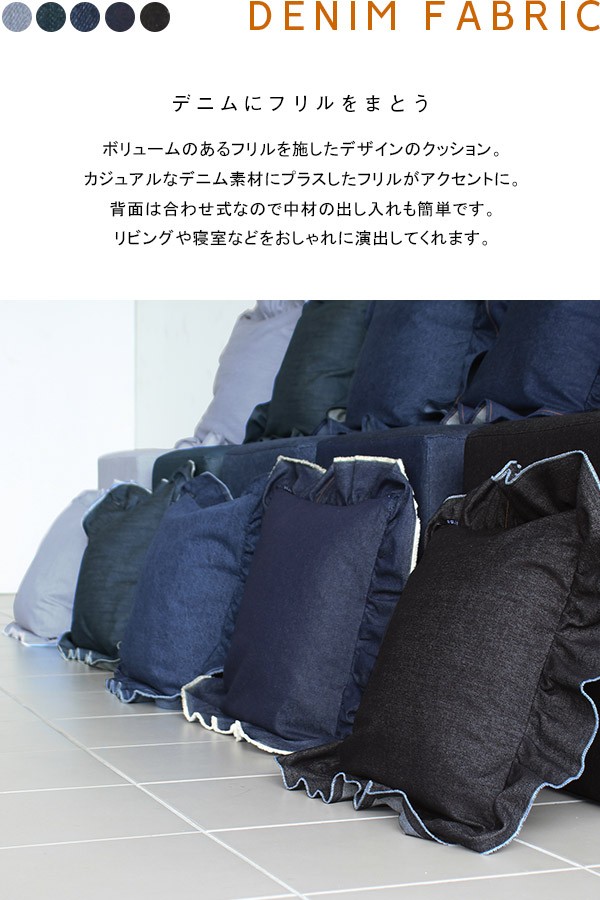 クッション フリル デニムクッション 正方形 45×45 おしゃれ デニム 西海岸 日本製 北欧 可愛い 》
