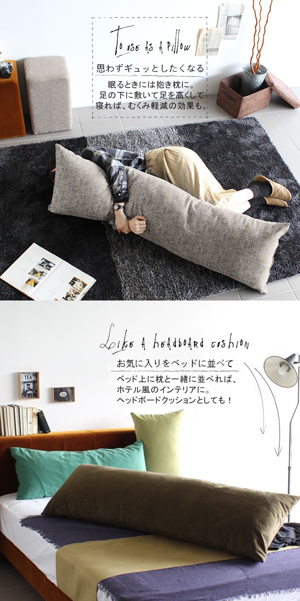 クッション 長い 長方形 ロング ロングクッション 150cm インテリア ロング枕 長い枕 抱き枕 ロングピロー ボディピロー △