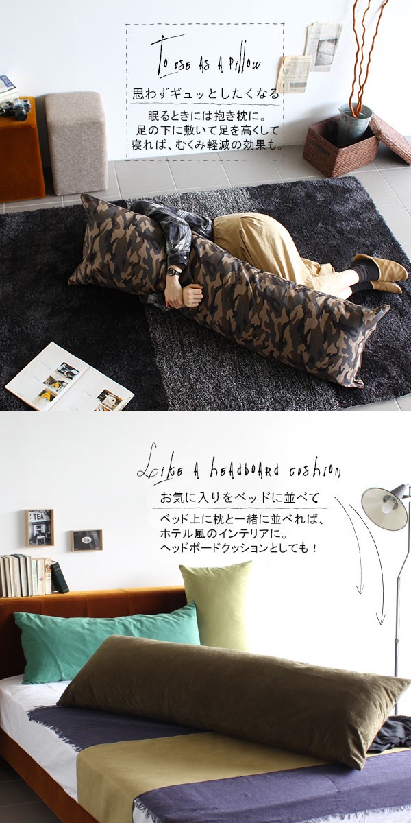 クッション 迷彩 長方形 ロング ロングクッション 150cm インテリア 長い ロング枕 長い枕 抱き枕 ロングピロー ボディピロー △