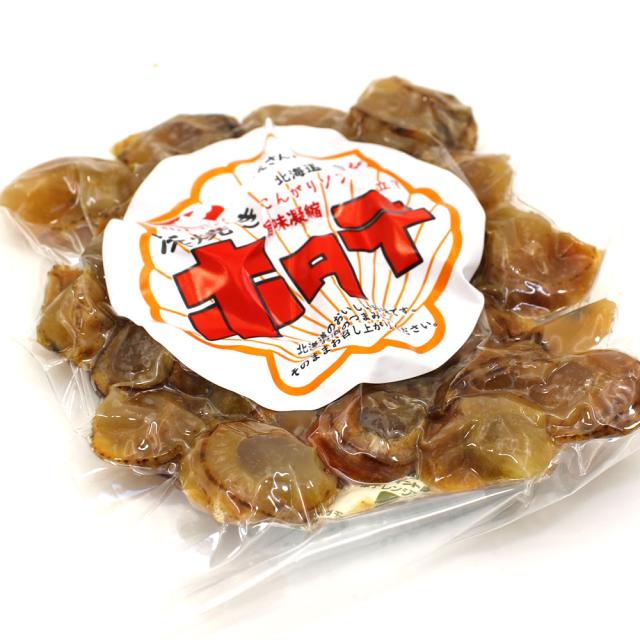 ・原材料名:ほたて貝(北海道産)、砂糖、食塩、醤油、米発酵調味料、植物性たん白加水分解物、ソルビトール、調味料(アミノ酸等)、酸味料 (原材料の一部に小麦、大豆を含む)