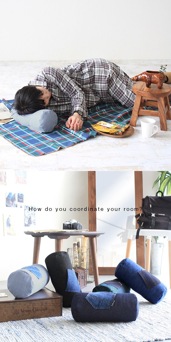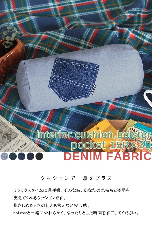 interior cushion bolster pocket 15R×30 中綿付き デニム