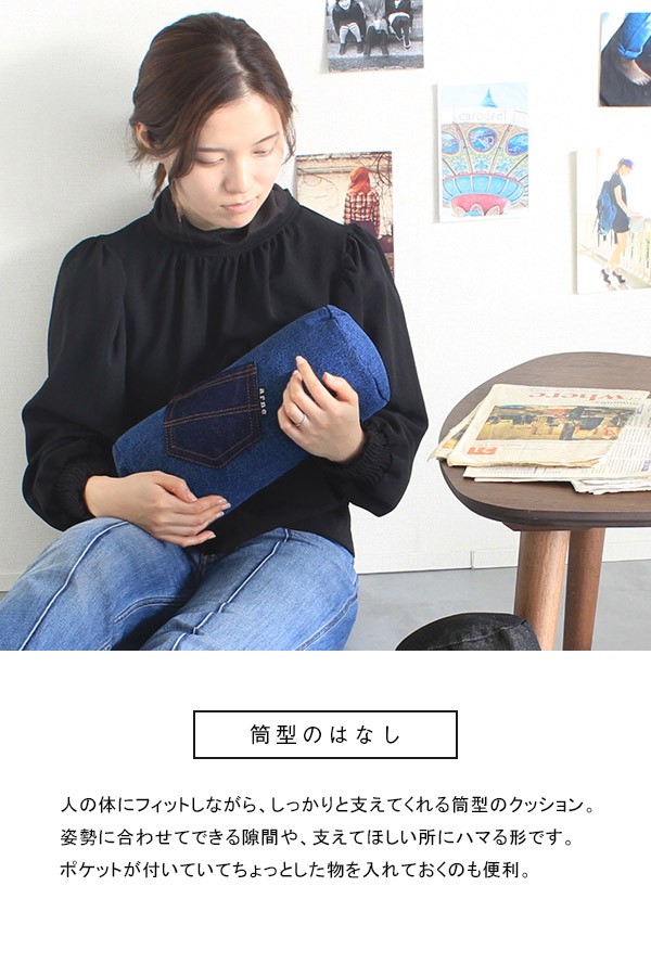 クッション かわいい 30cm 中材入り 無地 筒形 長方形 椅子 オフィス ブルー ブラック 青 癒し 枕 ポケット 日本製 》