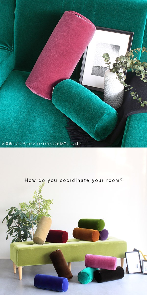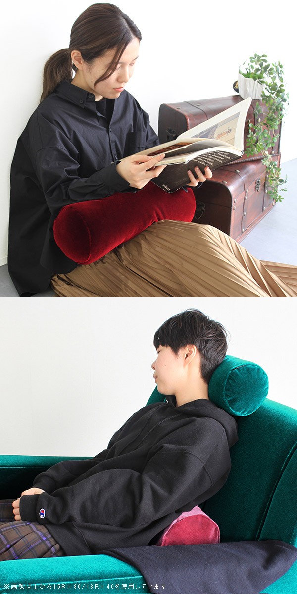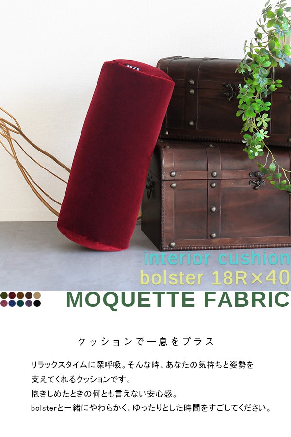 クッション かわいい 40cm 中材入り 無地 筒形 椅子 オフィス カラフル グリーン 赤 ブラウン ピンク ベージュ ブルー ブラック 紫 》