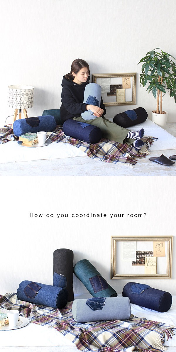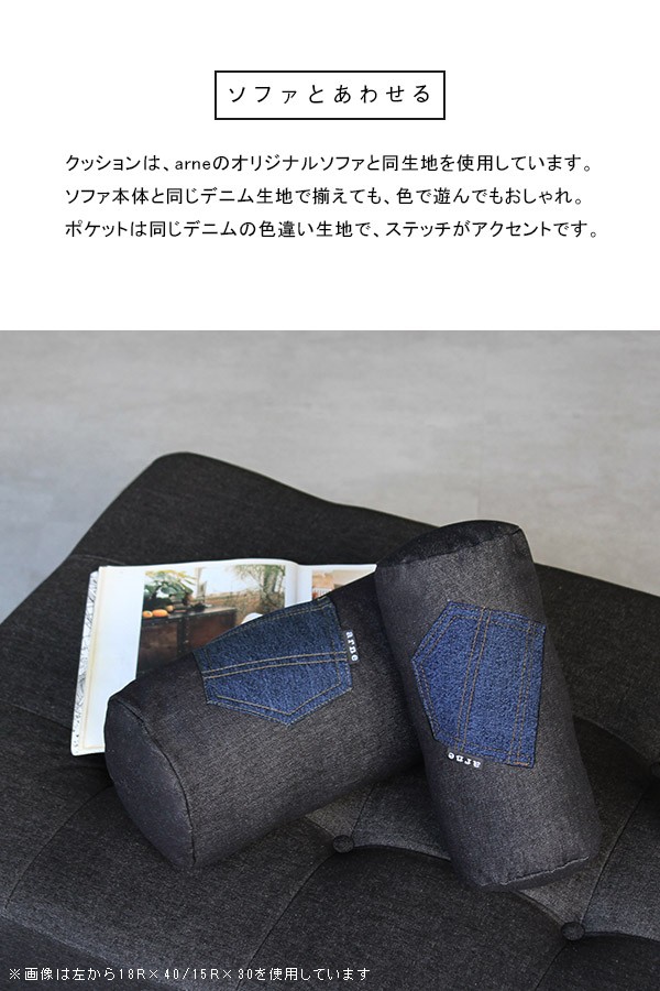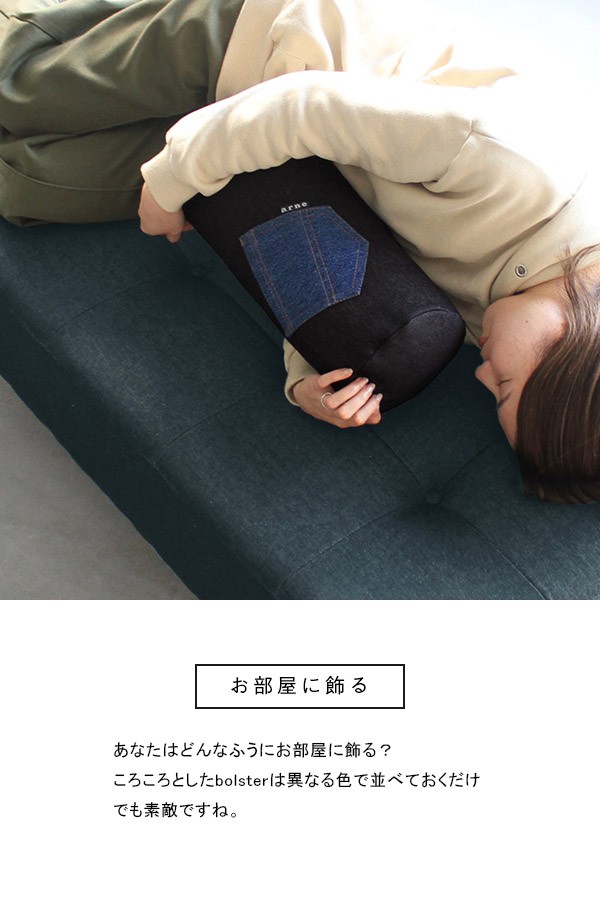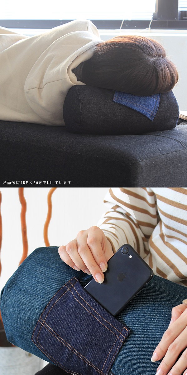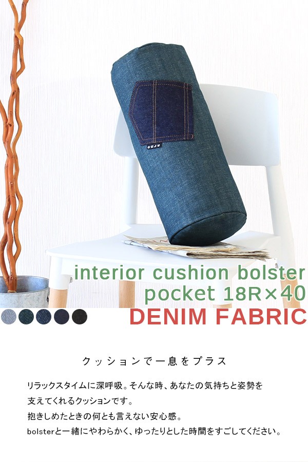 interior cushion bolster pocket 18R×40 中綿付き デニム