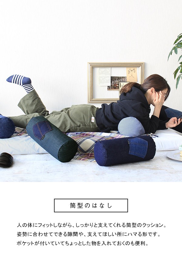 クッション かわいい 40cm 中材入り 無地 筒形 長方形 椅子 オフィス ブルー ブラック 青 癒し 枕 ポケット 日本製 》